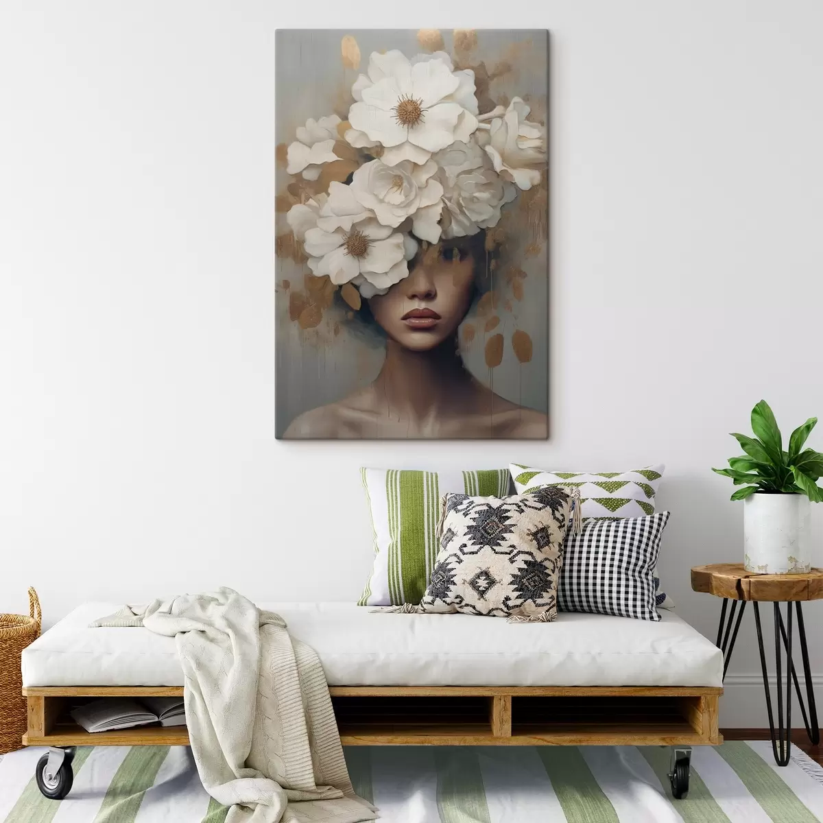 Wandbilder Porträt mit weißen Blumen Art. s42664