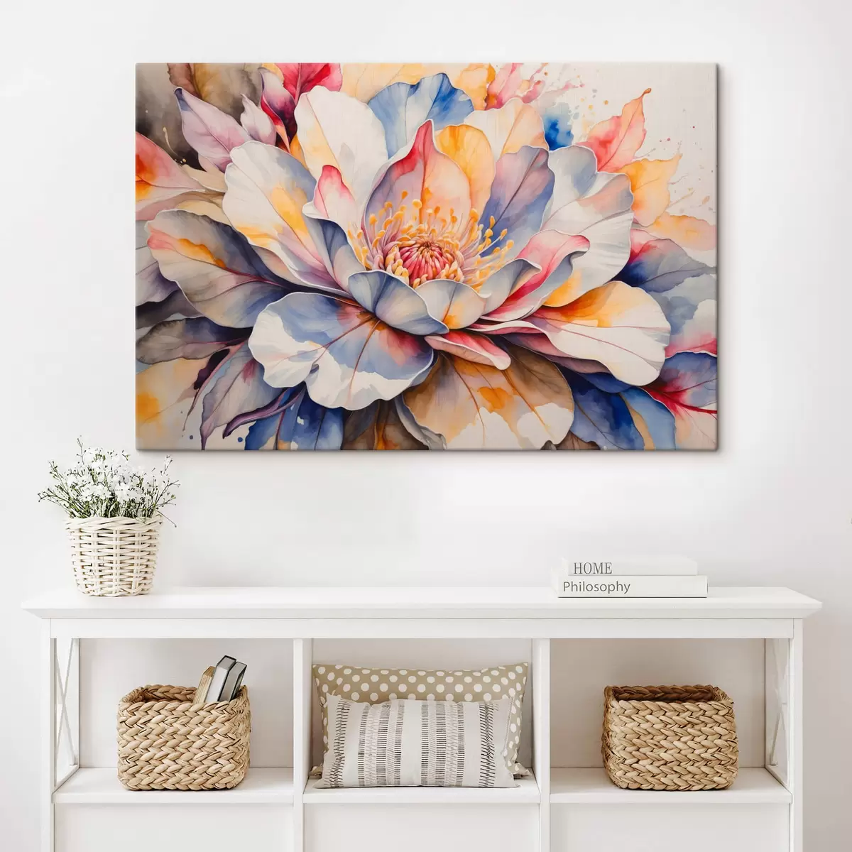 Wandbilder Mehrfarbige Blume mit Aquarellimitation s42706