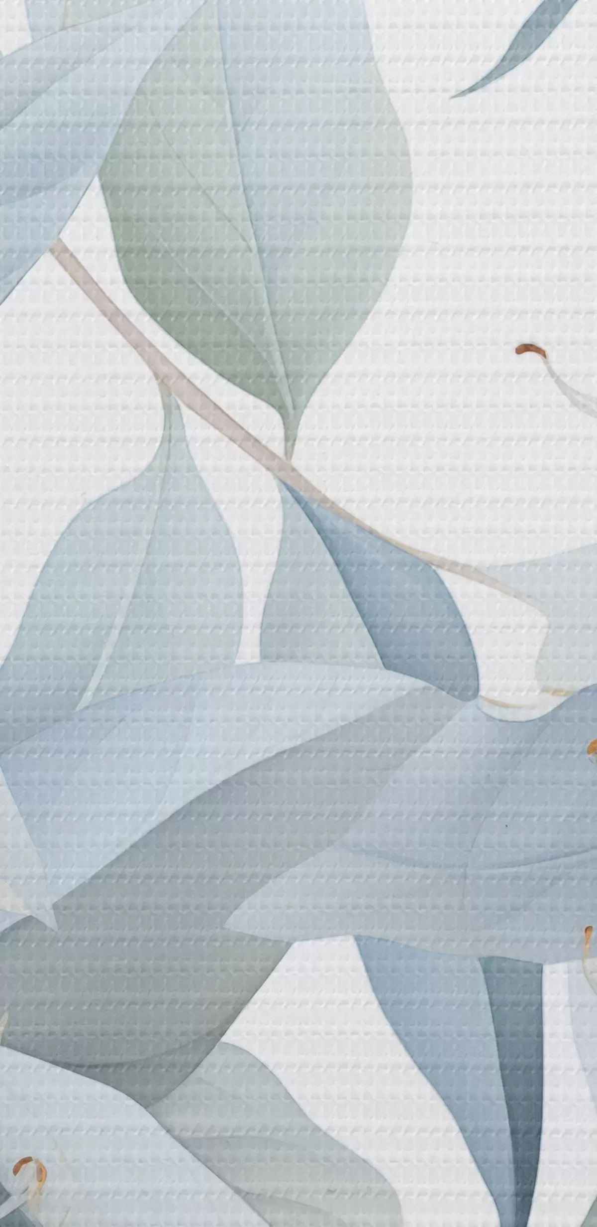 Wandbilder Detaillierte botanische Illustration von Eukaliptusblüten mit weißen Staubfäden, umgeben von zarten, hellgrünen Blättern s42725