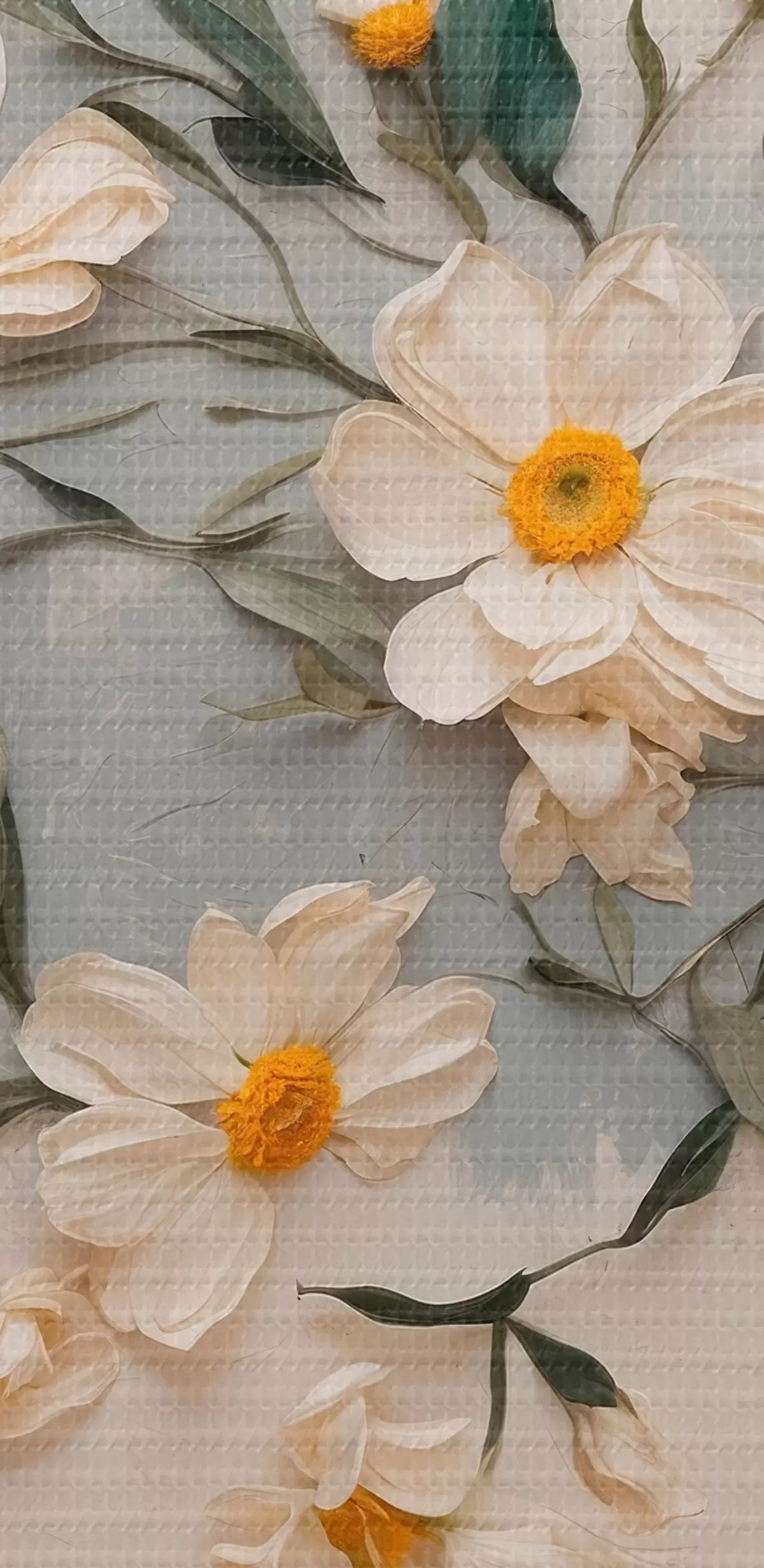Wandbilder Weiße Blumen und Blätter auf weißem und grauem Hintergrund s42764