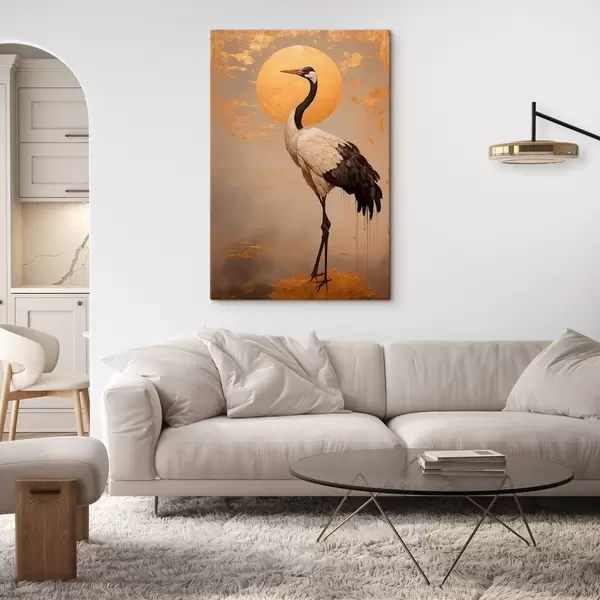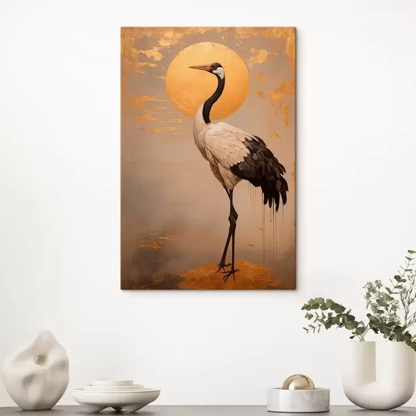 Wandbilder Kranich vor der Sonne im Stil der Acrylmalerei s42773