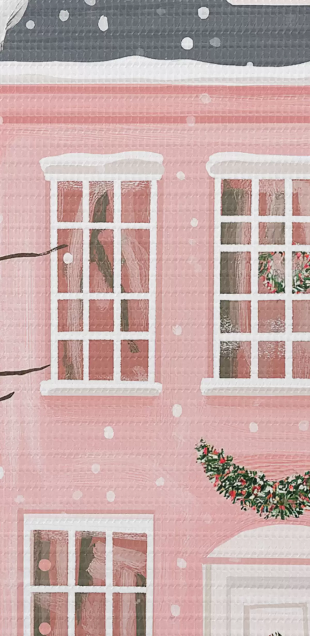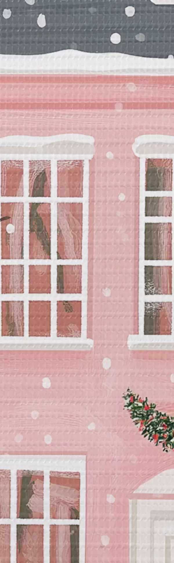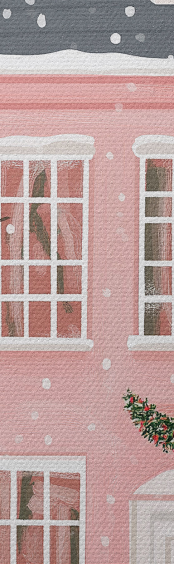 Wandbilder Hübsche rosa Häuser, Kiefern, Winterlandschaften s42791