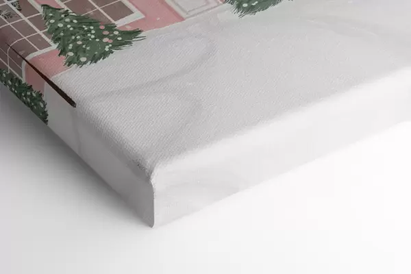Wandbilder Hübsche rosa Häuser, Kiefern, Winterlandschaften s42791