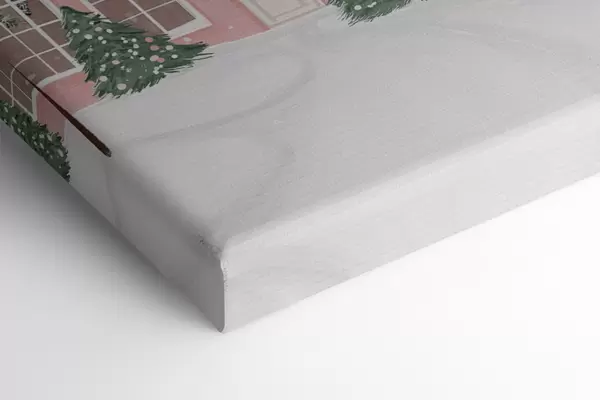 Wandbilder Hübsche rosa Häuser, Kiefern, Winterlandschaften Art. s42791
