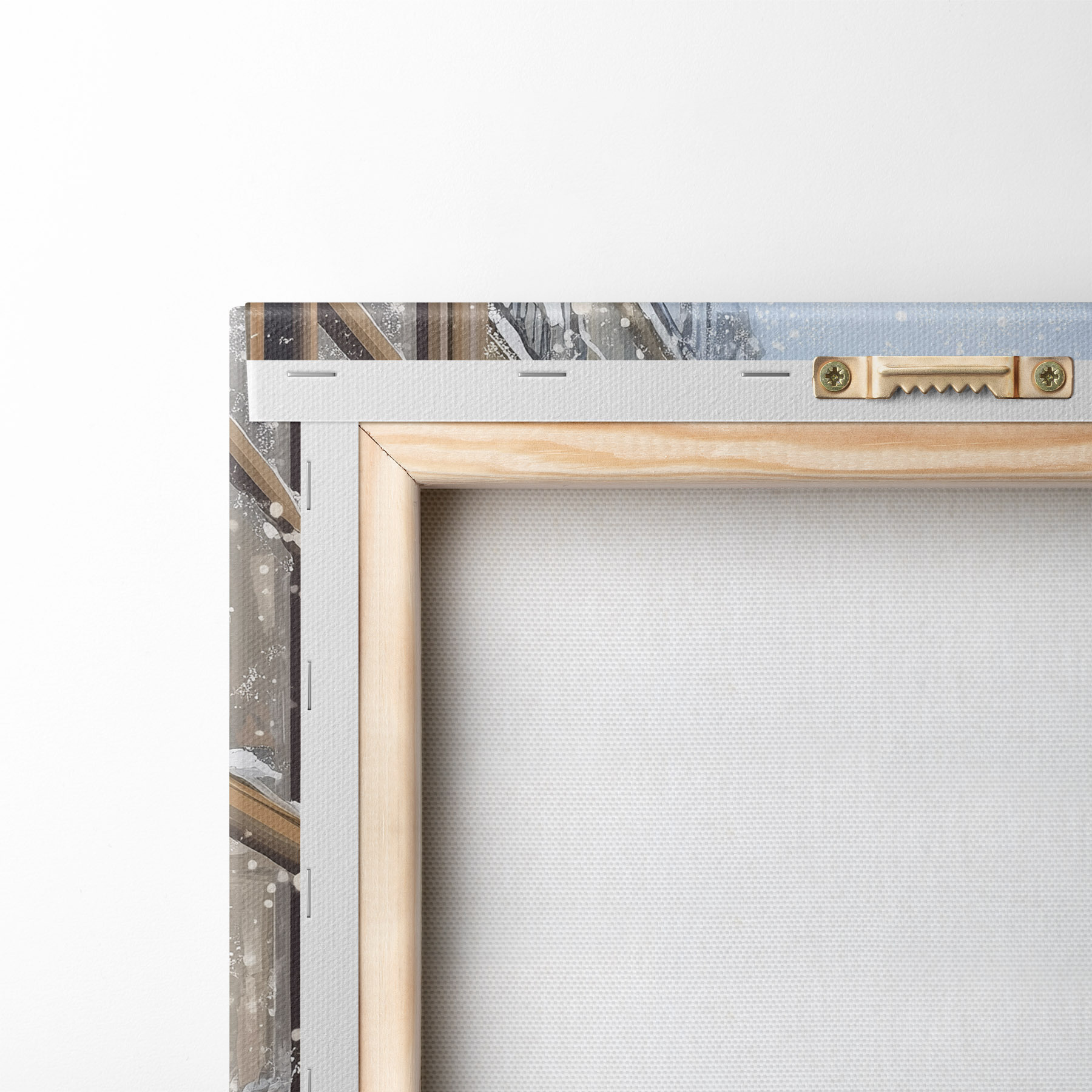 Um die Leinwand auf Keilrahmen zu spannen, ohne das Bild zu beschädigen, verwenden wir ein gespiegeltes Bild.