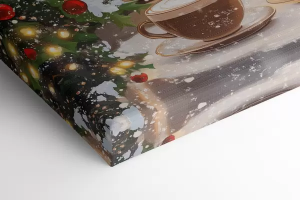 Wandbilder Gemütliches Wintercafé, Tassen Kaffee, Acryl-Stil, alte Stadtarchitektur Art. s42795
