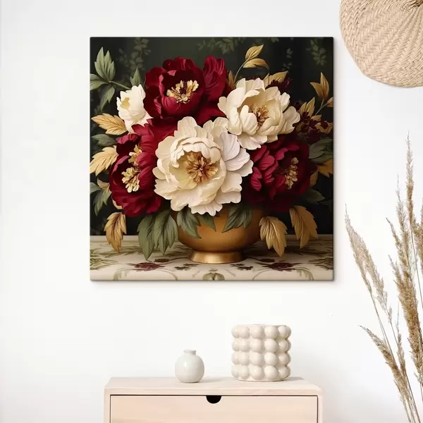 Wandbilder Rote und weiße Pfingstrosen in einer Vase Art. s42820