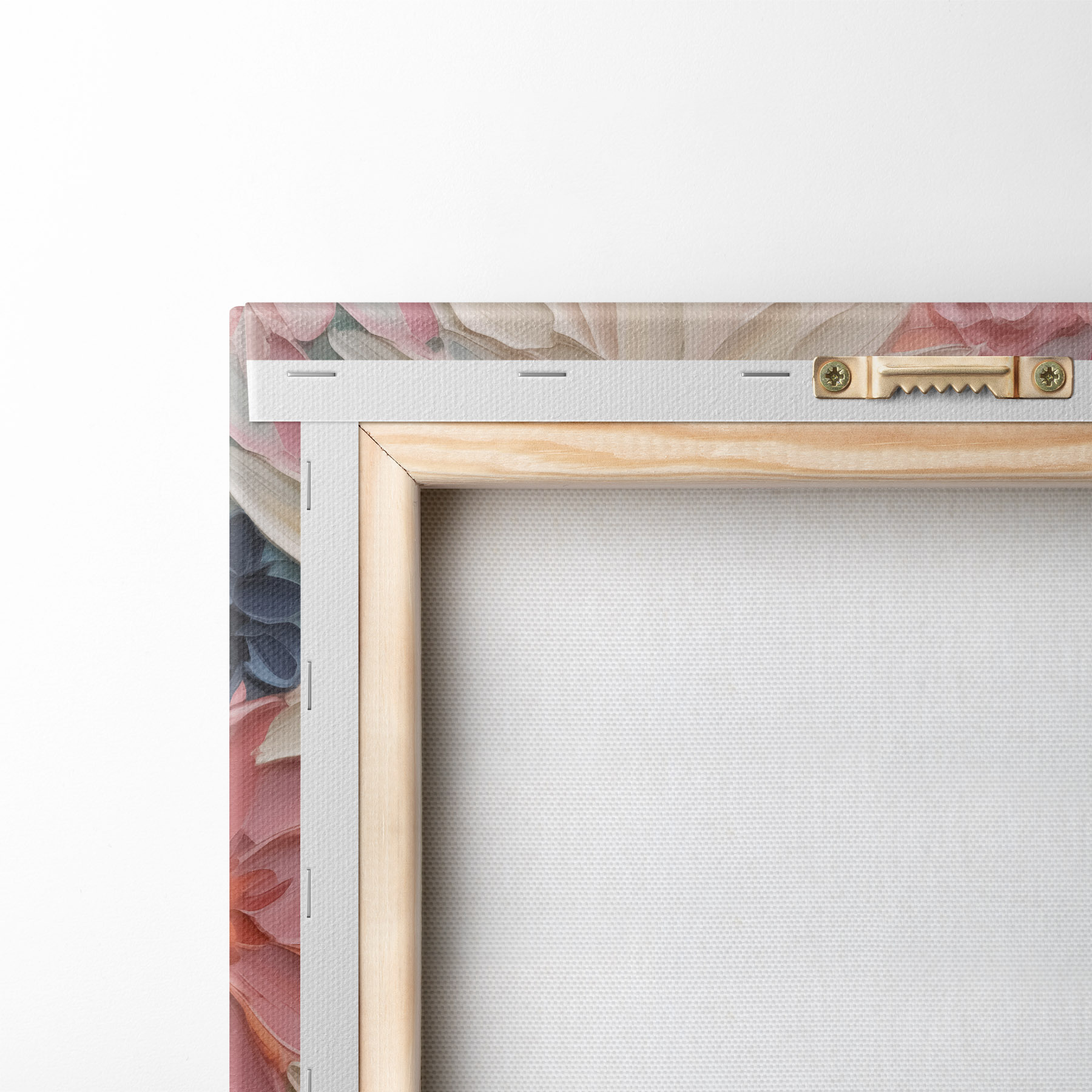 Um die Leinwand auf Keilrahmen zu spannen, ohne das Bild zu beschädigen, verwenden wir ein gespiegeltes Bild.