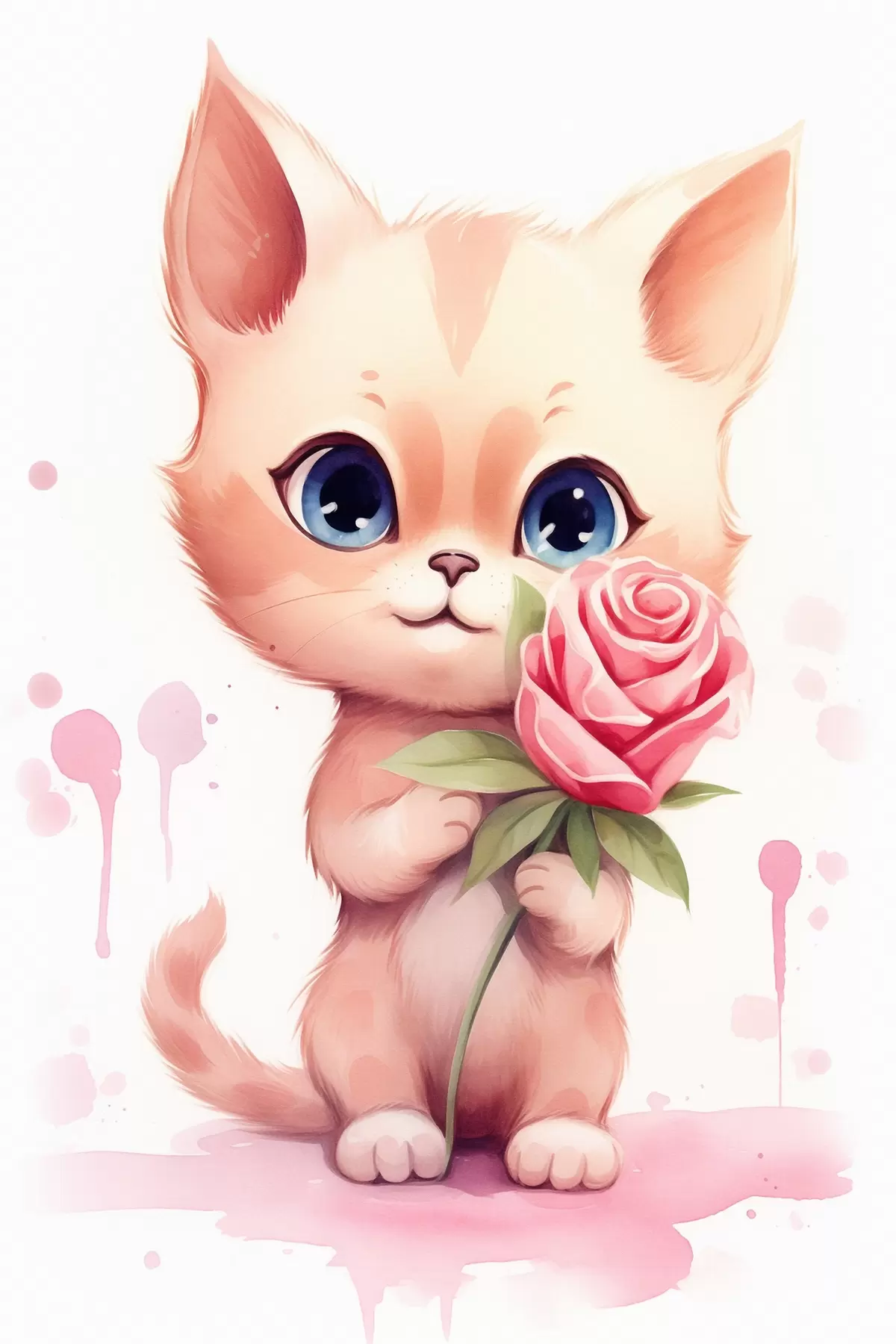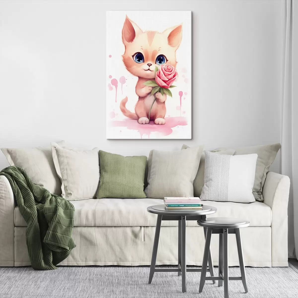 Wandbilder Niedliche Katze mit einer Rose Art. s42866