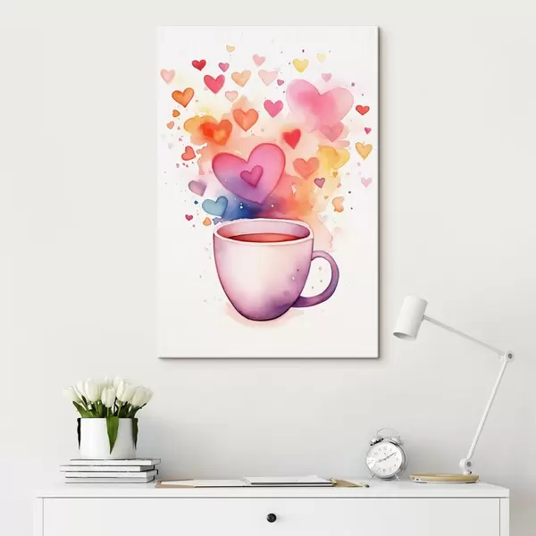 Wandbilder Eine Tasse auf einem Hintergrund aus Aquarellherzen Art. s42869