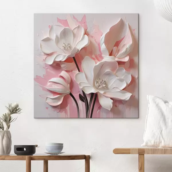 Drei Materialtypen stehen zur Verfügung: Economic Canvas - ein dichtes und haltbares Material für den Digitaldruck, identisch mit Malerleinwand, wasserfeste Oberfläche, realistische Wiedergabe von Details, mittelkörniges Material. Premium Canvas - die Textur ähnelt der einer Malerleinwand (verwobene kleine Fäden). Weiche, detaillierte Wiedergabe des Bildes auf einer matten Oberfläche. Eco-Premium - hochwertiges Gewebe aus 100% Baumwolle. Dank der natürlichen Baumwollfasern ist das Material langlebig und verschleißfest. Hervorragende Farbwiedergabe und Detailtreue.