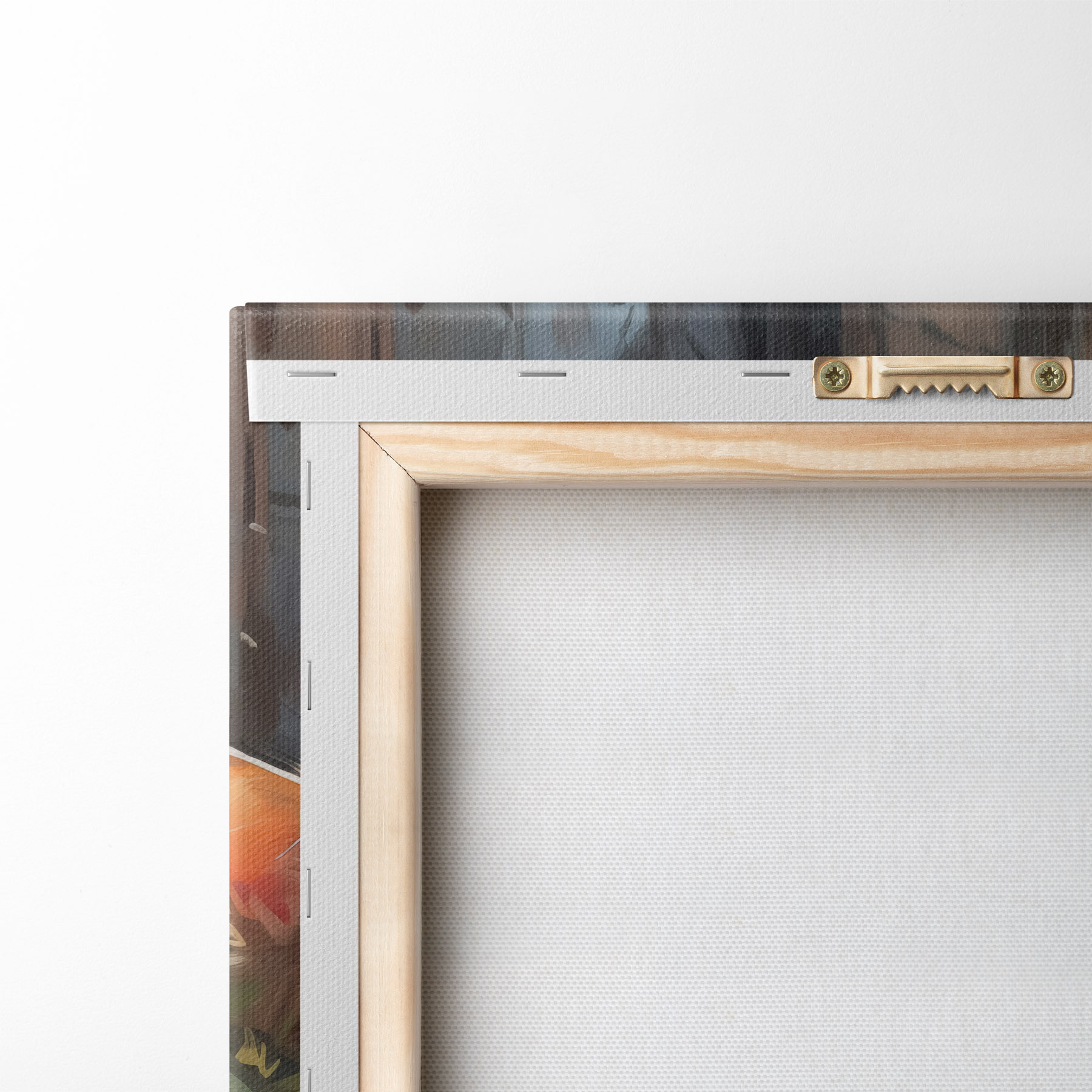 Drei Materialtypen stehen zur Verfügung: Economic Canvas - ein dichtes und haltbares Material für den Digitaldruck, identisch mit Malerleinwand, wasserfeste Oberfläche, realistische Wiedergabe von Details, mittelkörniges Material. Premium Canvas - die Textur ähnelt der einer Malerleinwand (verwobene kleine Fäden). Weiche, detaillierte Wiedergabe des Bildes auf einer matten Oberfläche. Eco-Premium - hochwertiges Gewebe aus 100% Baumwolle. Dank der natürlichen Baumwollfasern ist das Material langlebig und verschleißfest. Hervorragende Farbwiedergabe und Detailtreue.