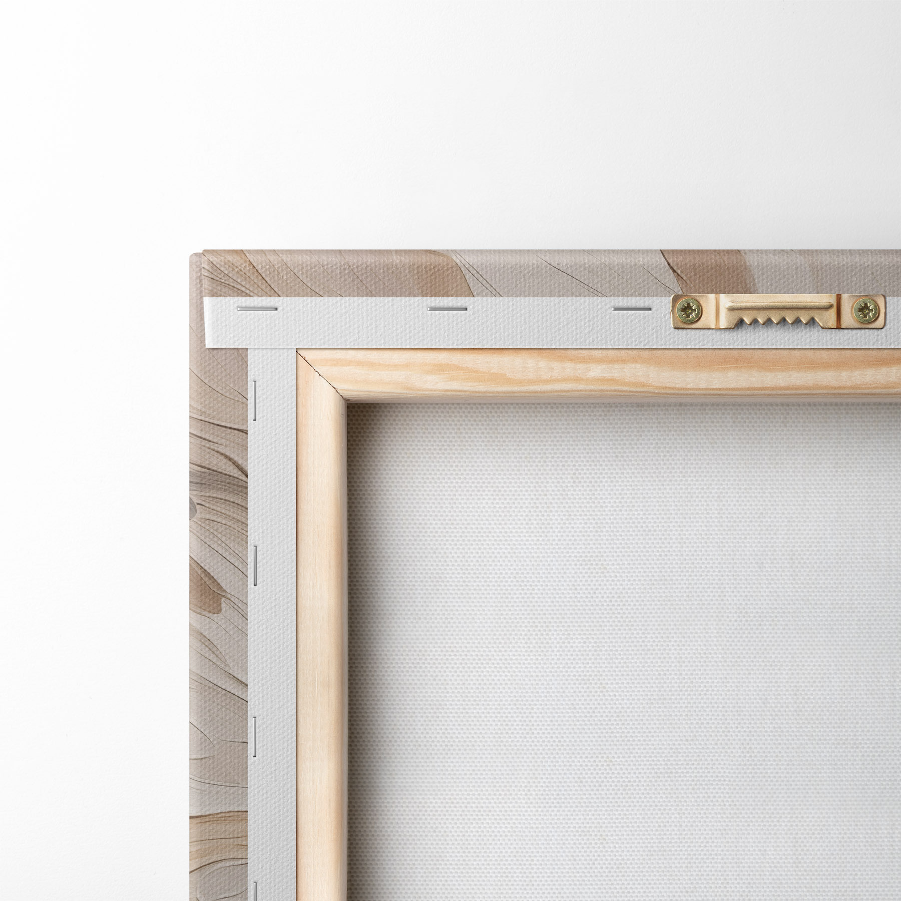 Um die Leinwand auf Keilrahmen zu spannen, ohne das Bild zu beschädigen, verwenden wir ein gespiegeltes Bild.