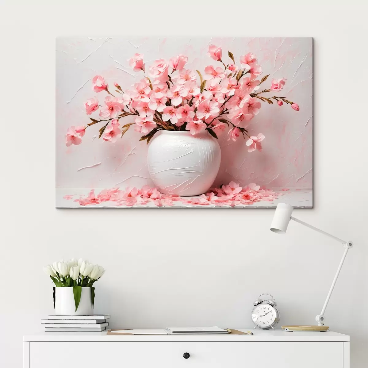 Wandbilder Rosa Blumen in weißer Vase Art. s42915