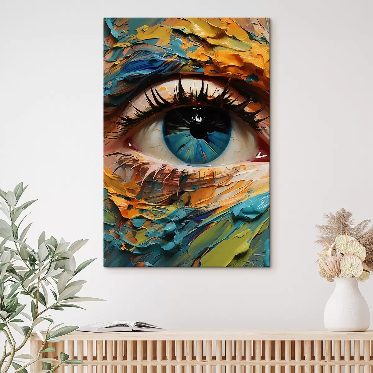 Wandbilder Abstraktes Porträt eines Auges in leuchtenden Farben, mit einem strukturierten Malerei-Effekt s42938