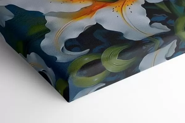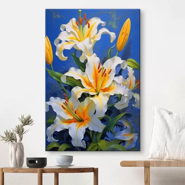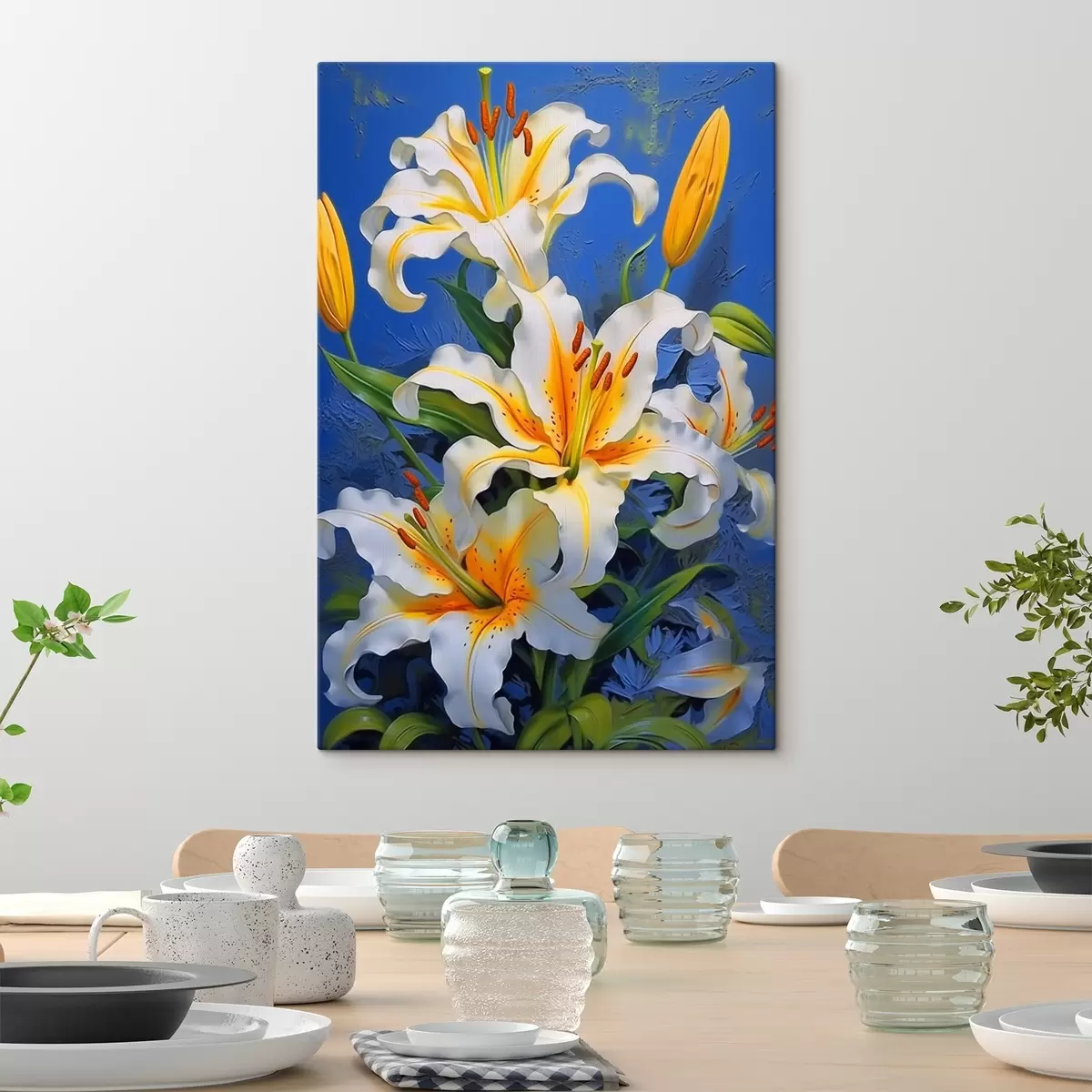 Wandbilder Weiße Lilien auf blauem Hintergrund Art. s43018
