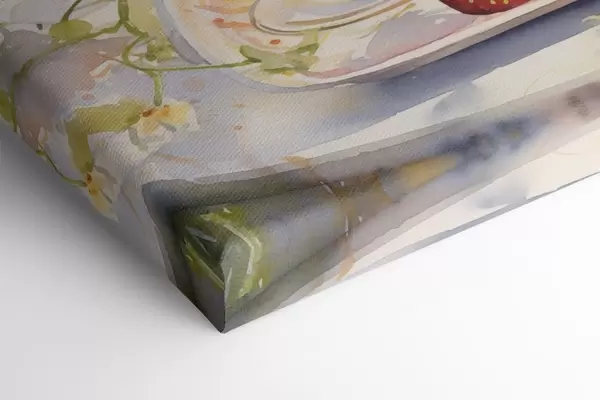 Wandbilder Aquarell-Stil Zeichnung von Champagner-Gläser, Blumen und Erdbeeren Art. s43056