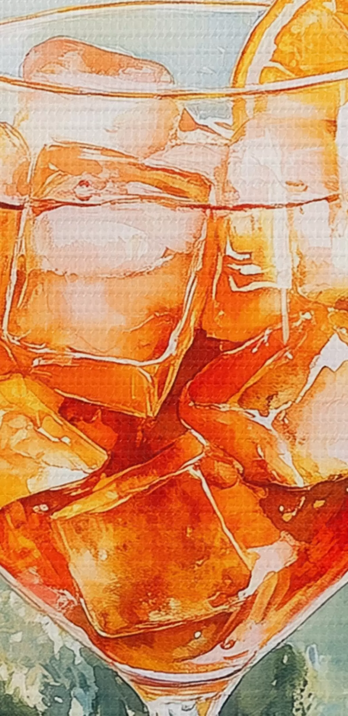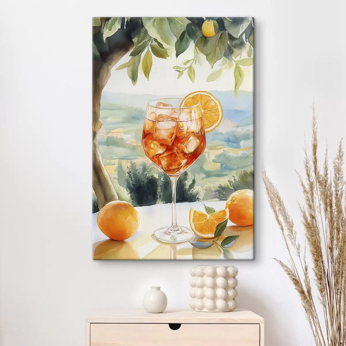 Wandbilder Sommercocktail, Aperol Spritz, Orangen, Zeichnung im Aquarellstil Art. s43058