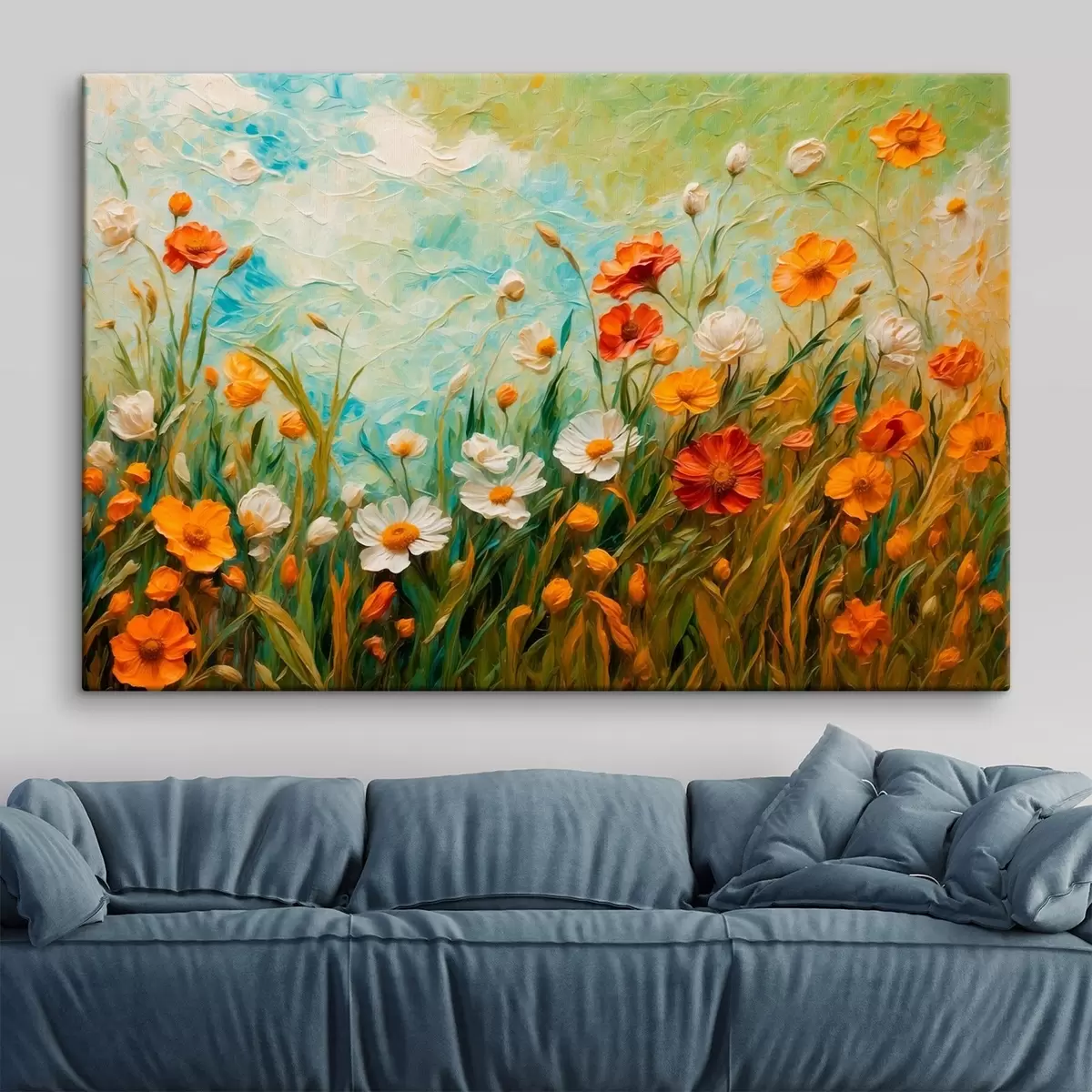 Wandbilder Blumenfeld auf abstraktem Hintergrund mit blauem Himmel Art. s43100