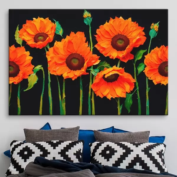 Wandbilder Rote Sonnenblumen auf dunklem Hintergrund Art. s43103
