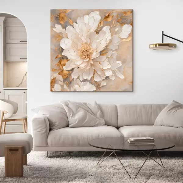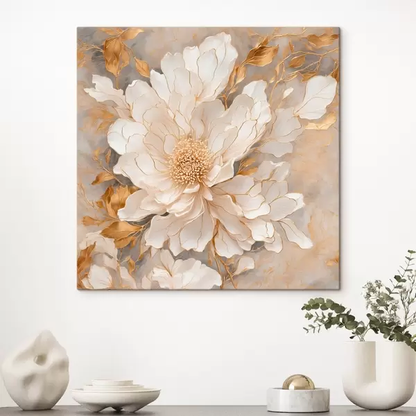 Wandbilder Weiße Blume mit Blättern in Acrylmalerei Stil Art. s43115