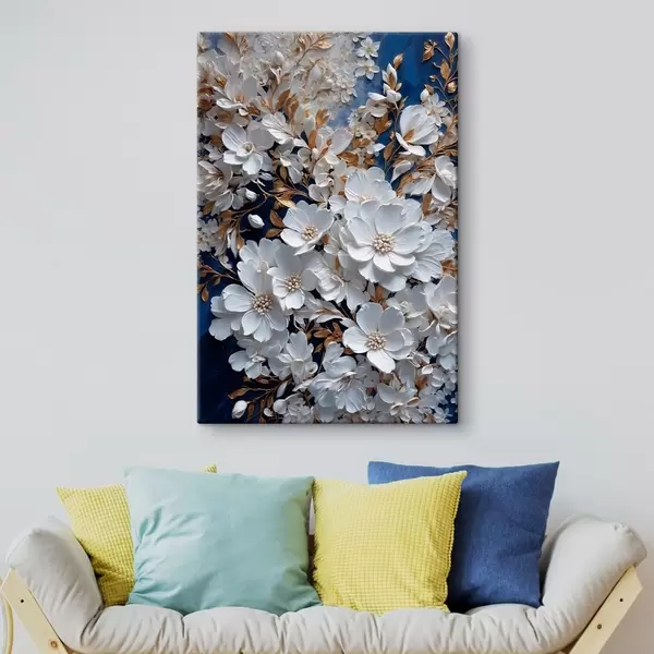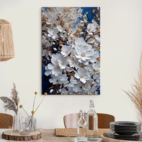Wandbilder Weiße Blumen auf blauem Hintergrund Art. s43116