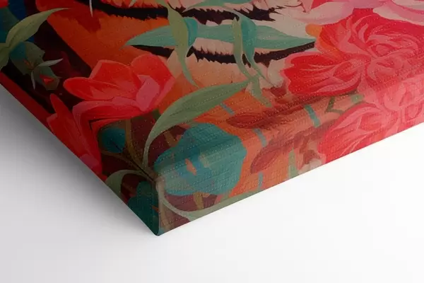 Wandbilder Der hypnotisierende Blick eines Tigers inmitten von leuchtenden Rosen s43132