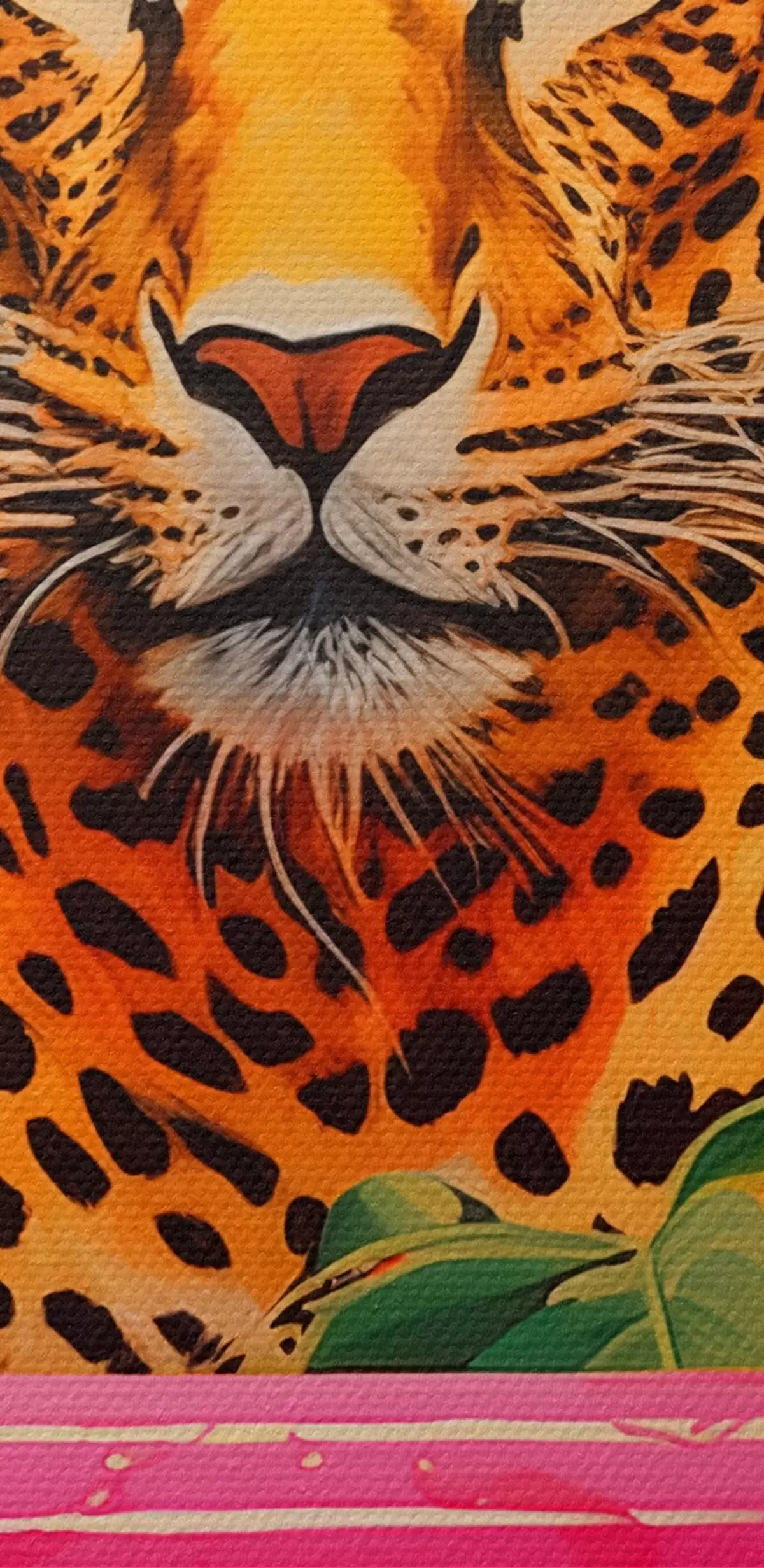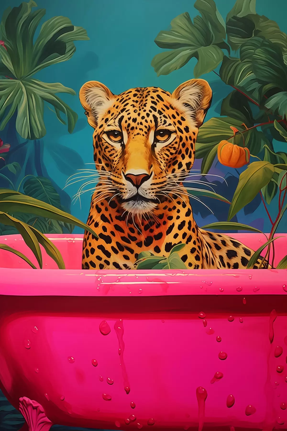 Wandbilder Ein Leopard in einer rosa Badewanne inmitten von exotischen Pflanzen Art. s43135