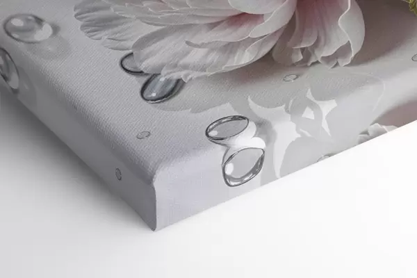 Wandbilder Hellrosa und weiße Pfingstrosen mit Wassertropfen auf den Blütenblättern, der Hintergrund ist eine weiße Fläche Art. s43158