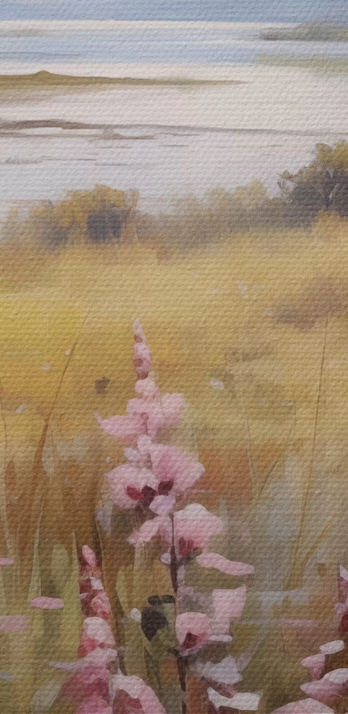 Das feine Fadengeflecht auf dieser Leinwand ähnelt der Oberfläche von professionellen Künstlerleinwänden.