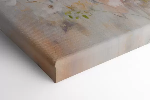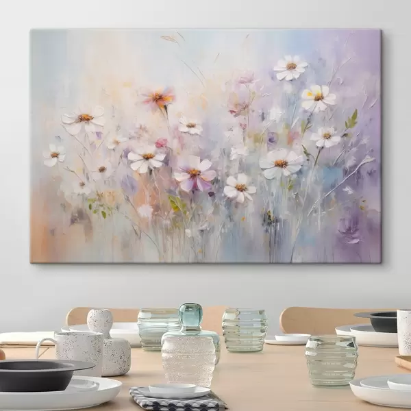Wandbilder Abstraktes, strukturiertes Feld mit weißen und rosa Blumen, weiche Pastellfarben, zarte Pinselstriche, Blumenwiese s43170