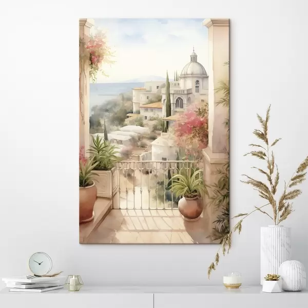 Wandbilder Spanien Sommerlandschaft, mediterrane Architektur, Aquarellstil s43181