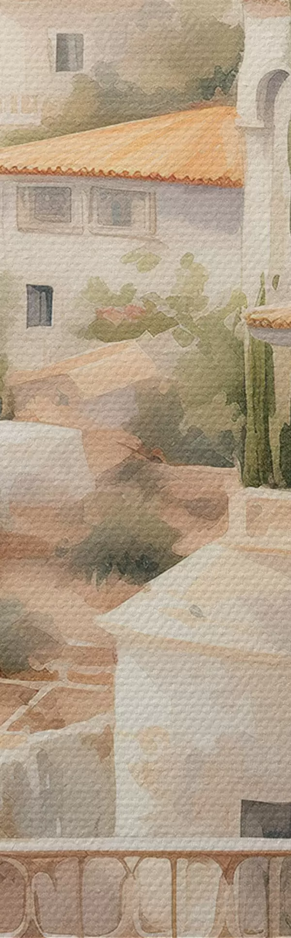 Wandbilder Spanien Sommerlandschaft, mediterrane Architektur, Aquarellstil Art. s43181