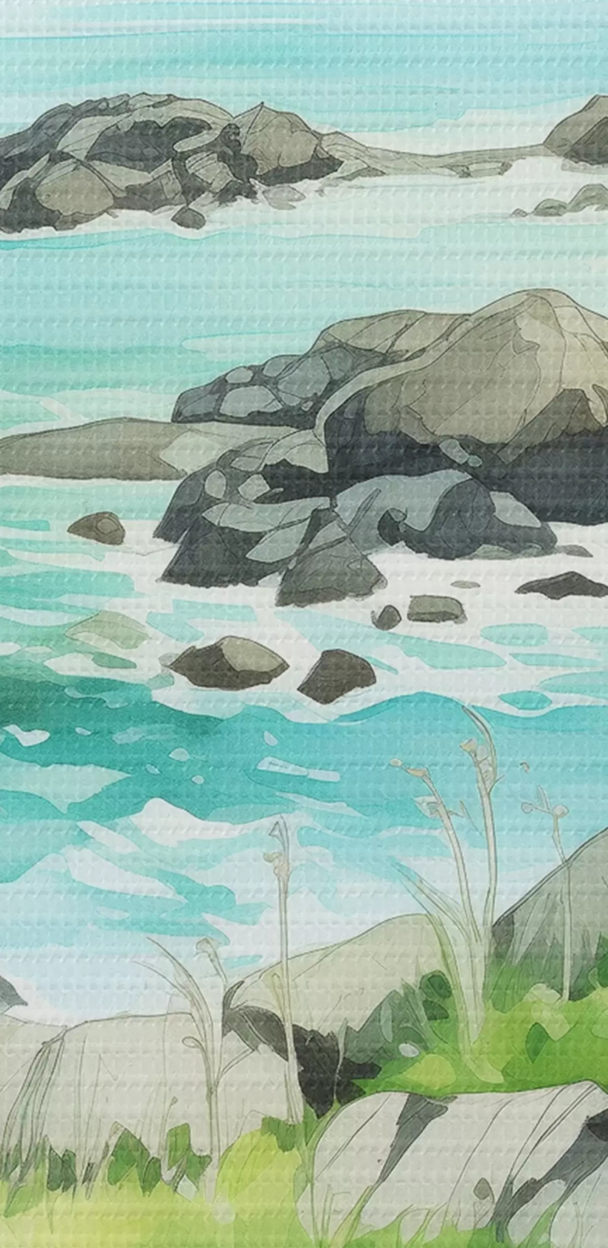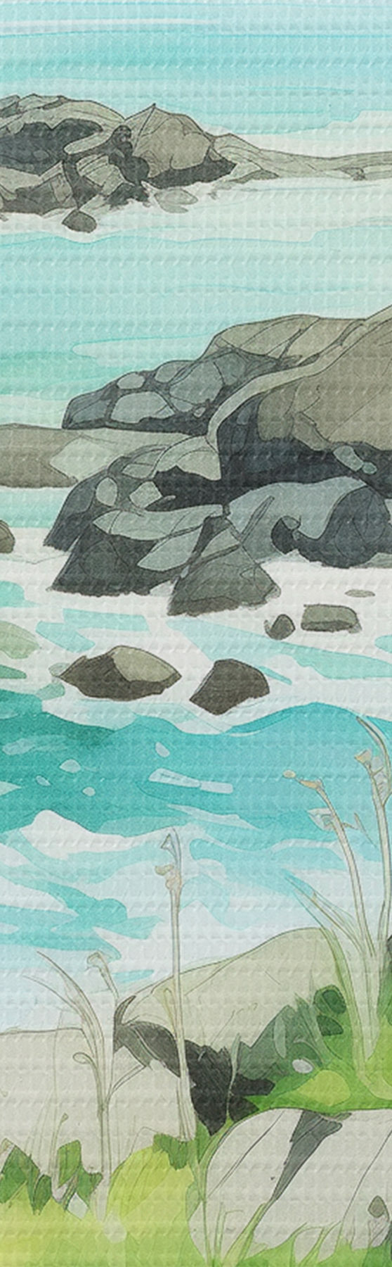 Wandbilder Norwegen Natur, Fjorde, Sommerlandschaft, grünes Gras, Berge, Aquarellstil Art. s43188