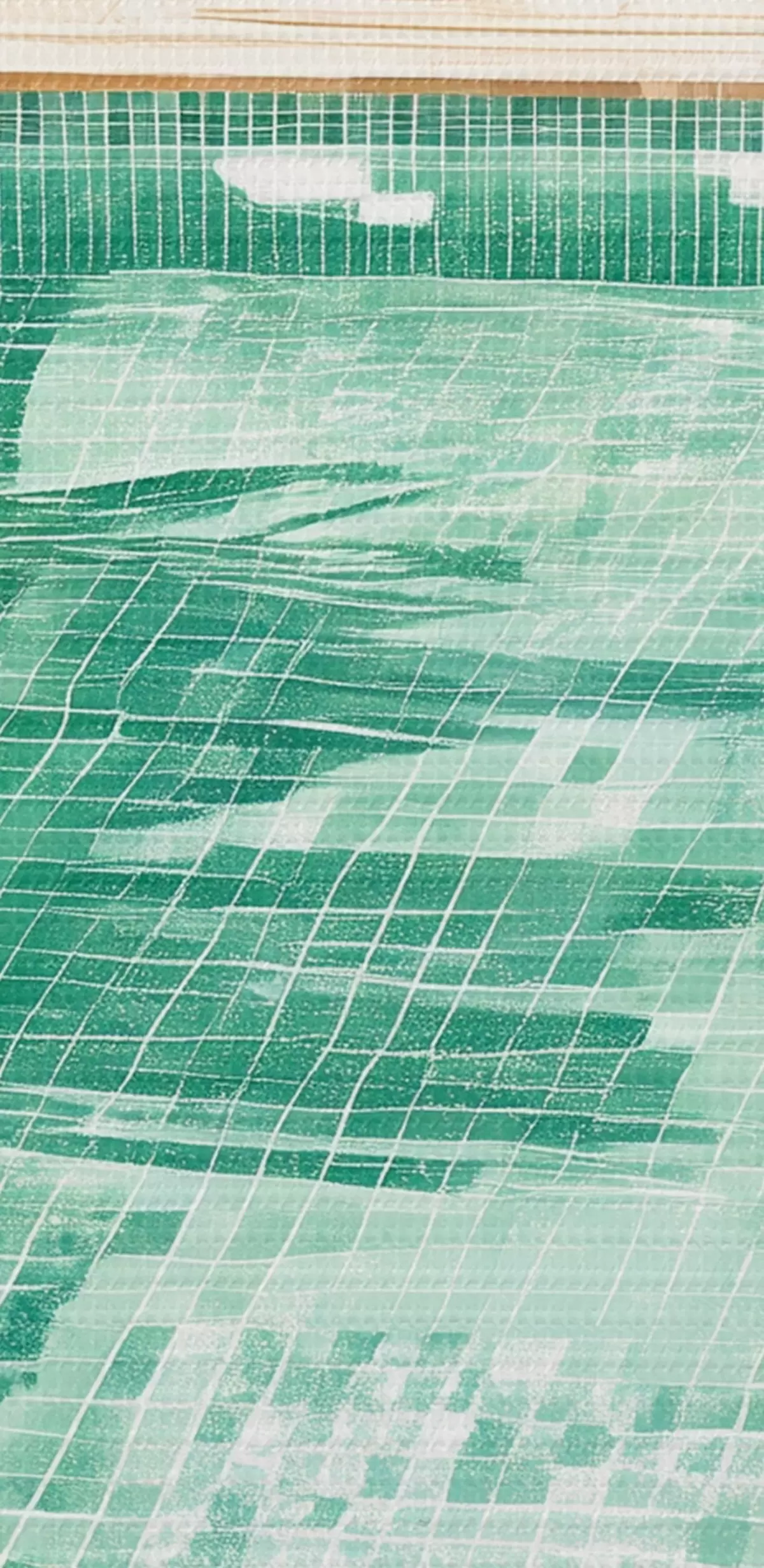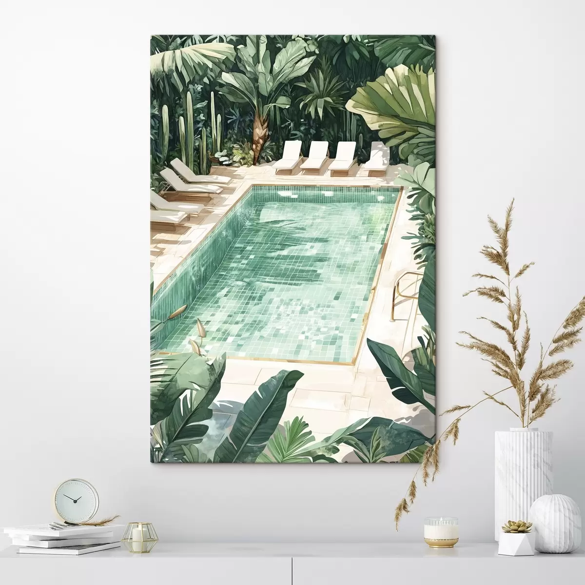 Wandbilder Sommer-Pool im grünen Garten, Vintage-Stil, Aquarell Art. s43189