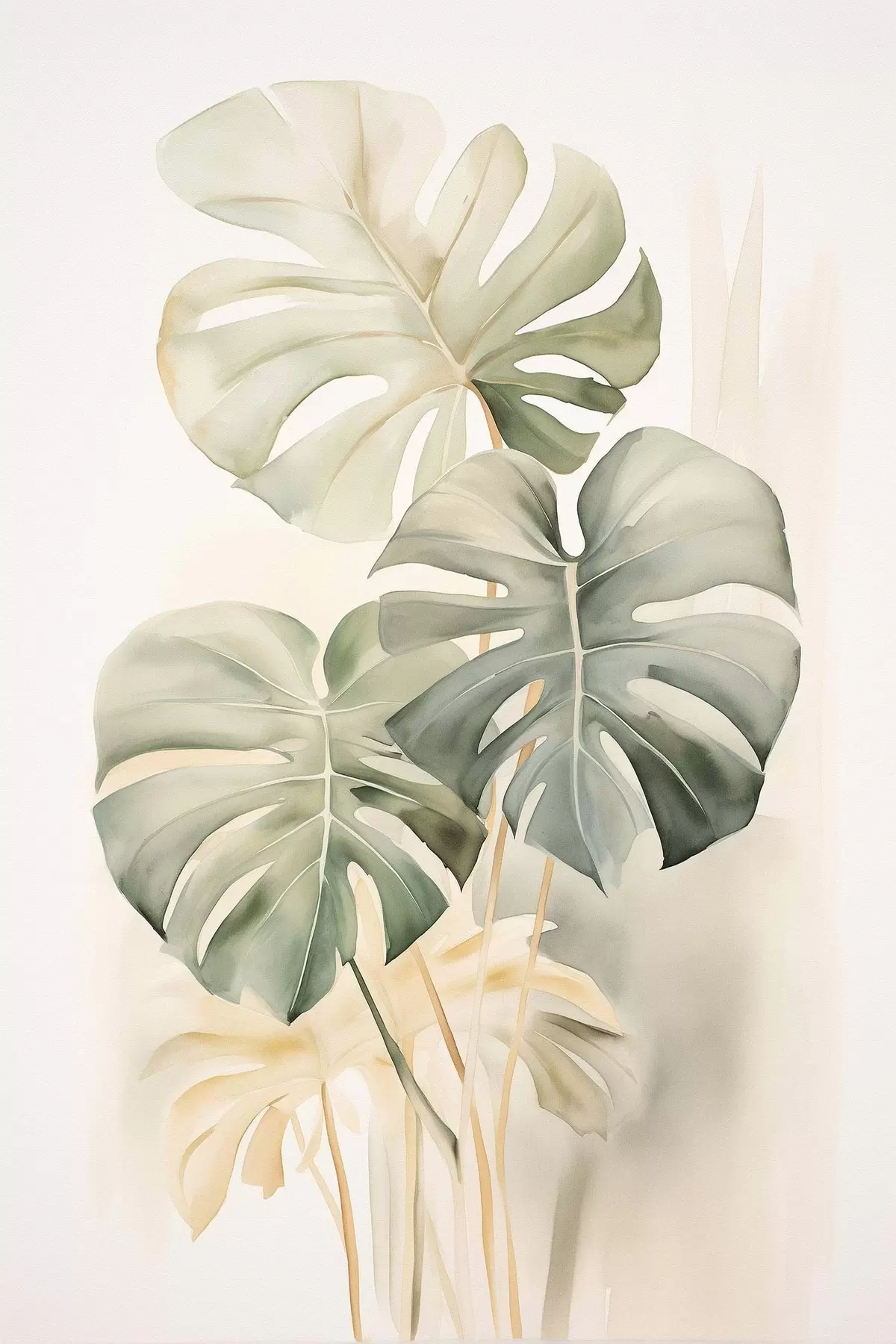 Wandbilder Monstera-Blätter in Aquarelltechnik Art. s43210