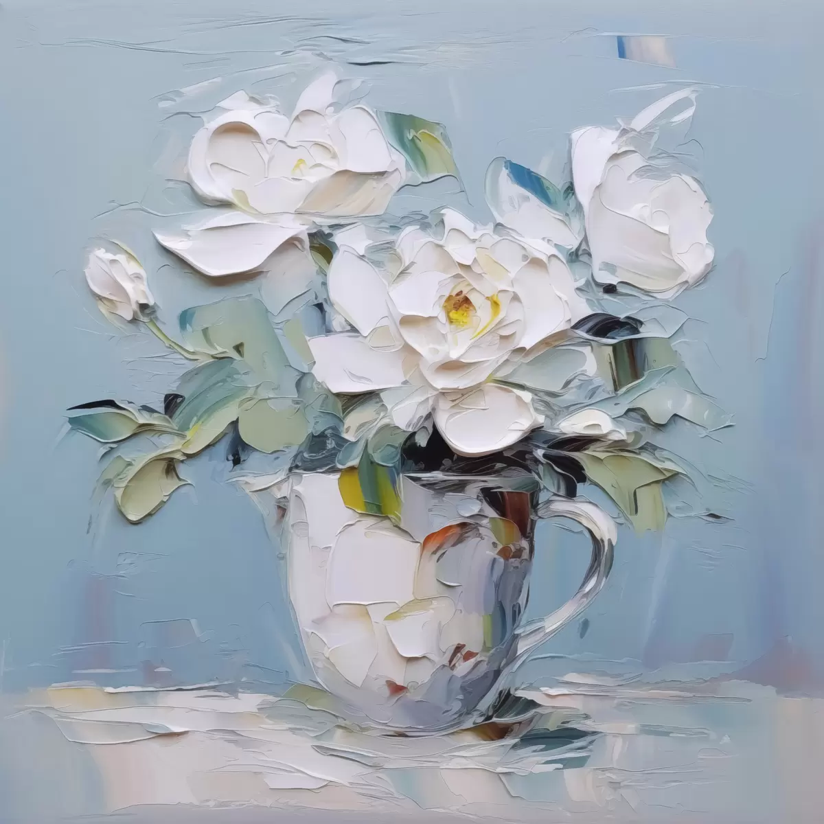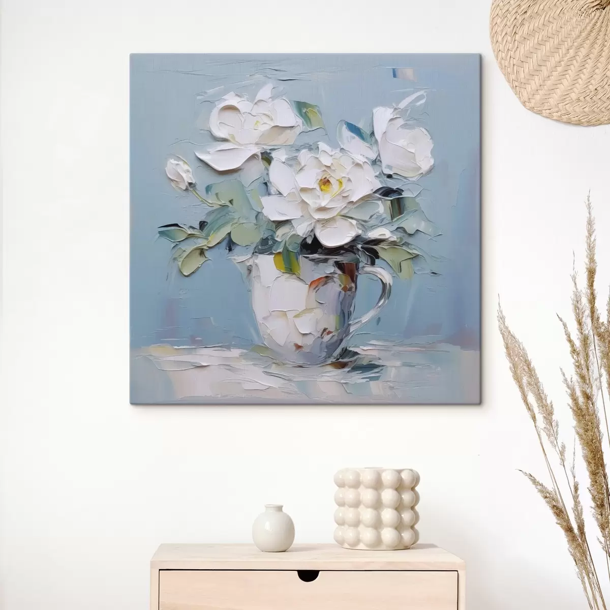 Wandbilder Weiße Blumen in einer Tasse Nachahmung Malerei Art. s43225