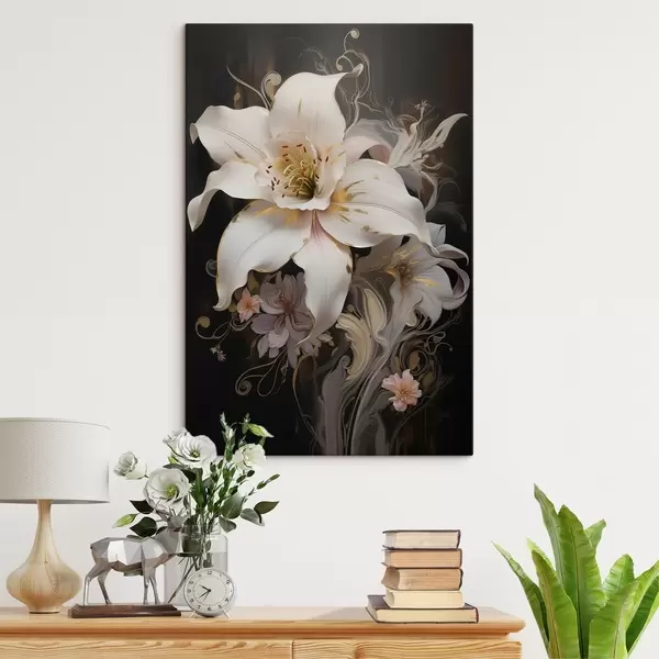 Wandbilder Nahaufnahme abstrakte Lilie Blume auf einem dunklen Hintergrund Art. s43254