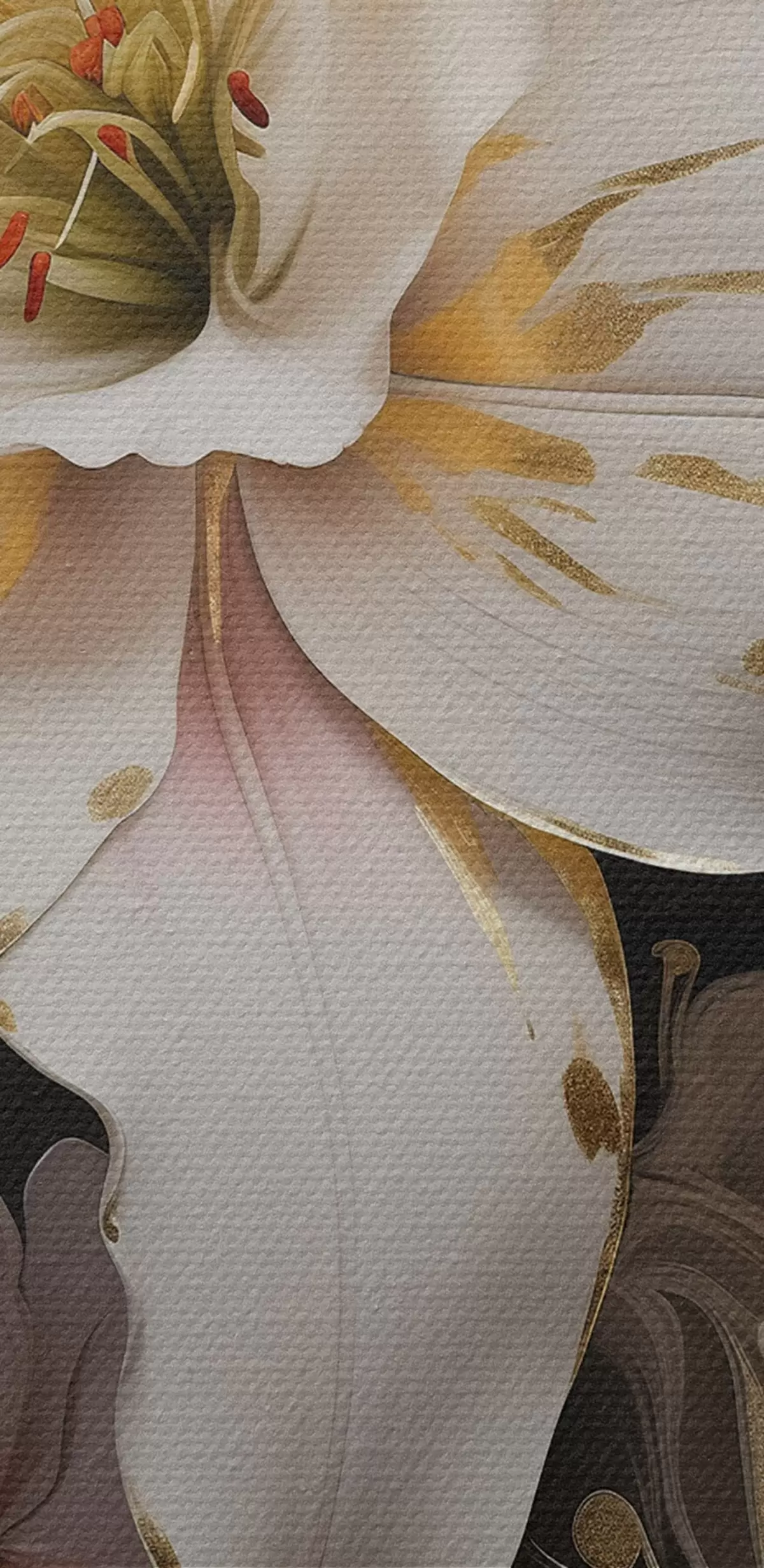 Drei Materialtypen stehen zur Verfügung: Economic Canvas - ein dichtes und haltbares Material für den Digitaldruck, identisch mit Malerleinwand, wasserfeste Oberfläche, realistische Wiedergabe von Details, mittelkörniges Material. Premium Canvas - die Textur ähnelt der einer Malerleinwand (verwobene kleine Fäden). Weiche, detaillierte Wiedergabe des Bildes auf einer matten Oberfläche. Eco-Premium - hochwertiges Gewebe aus 100% Baumwolle. Dank der natürlichen Baumwollfasern ist das Material langlebig und verschleißfest. Hervorragende Farbwiedergabe und Detailtreue.