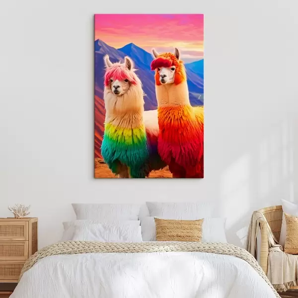 Wandbilder Fröhliche Regenbogen-Lamas s43262