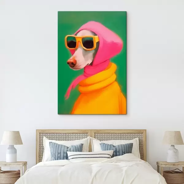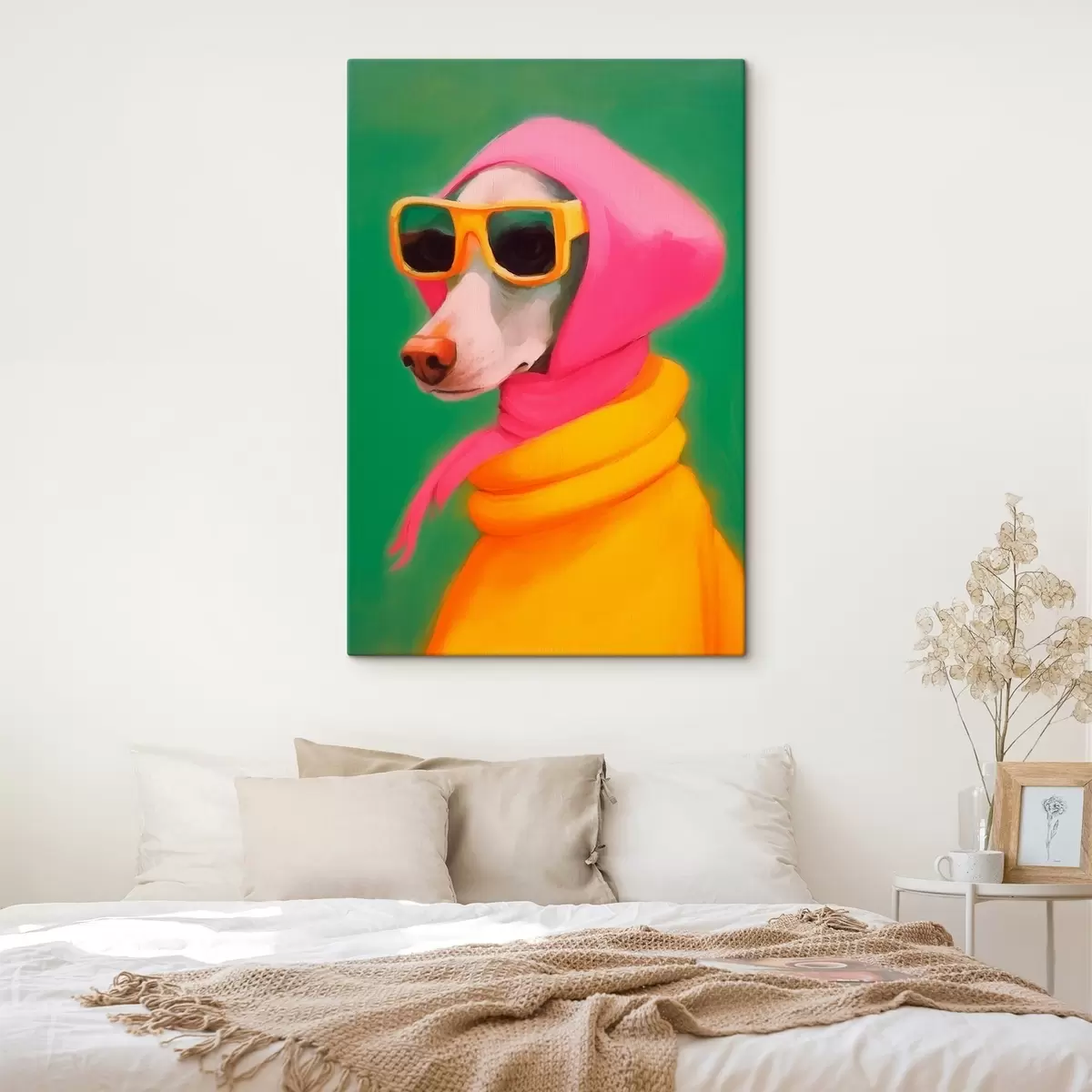 Wandbilder Stylischer Hund in heller Kleidung Art. s43265