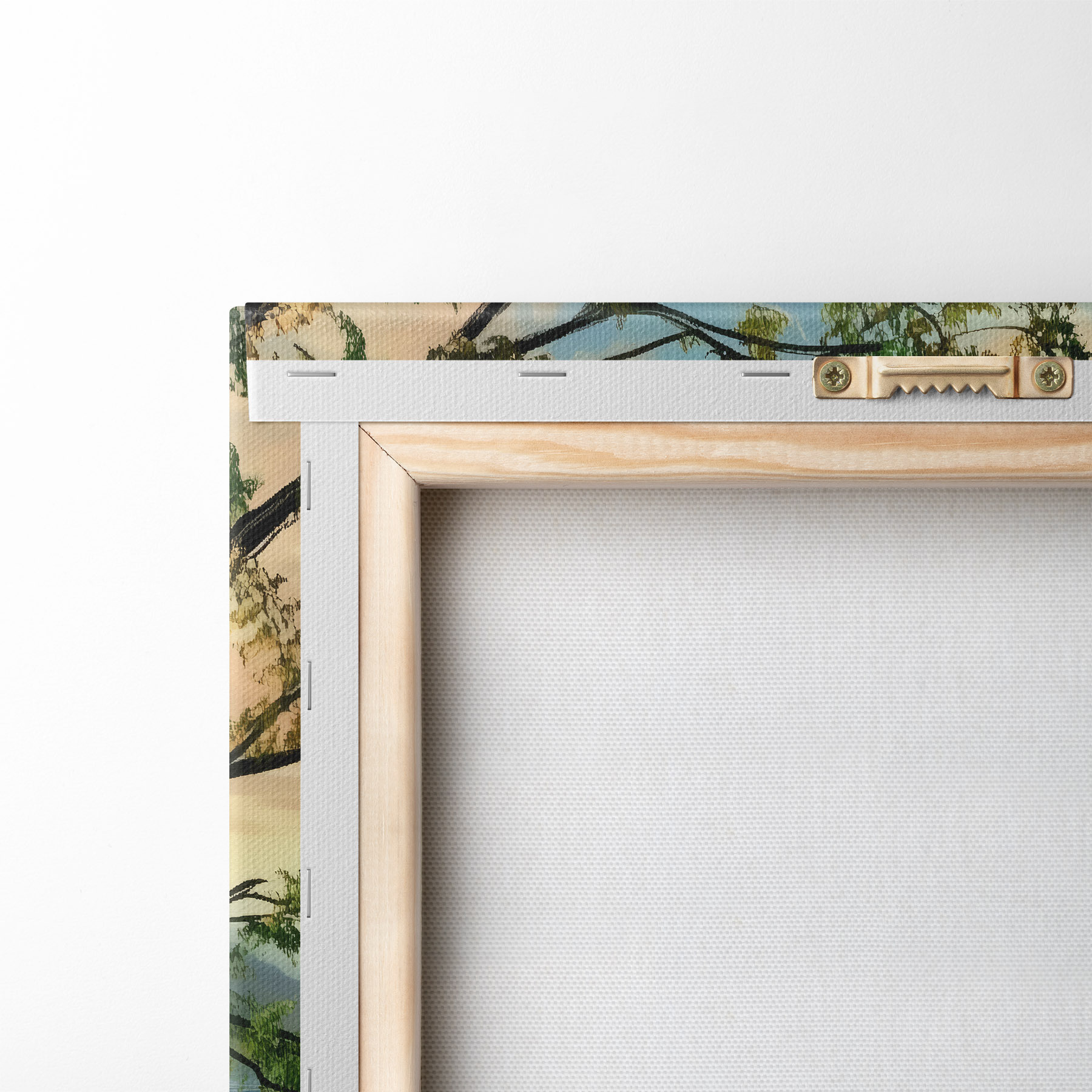 Um die Leinwand auf Keilrahmen zu spannen, ohne das Bild zu beschädigen, verwenden wir ein gespiegeltes Bild.