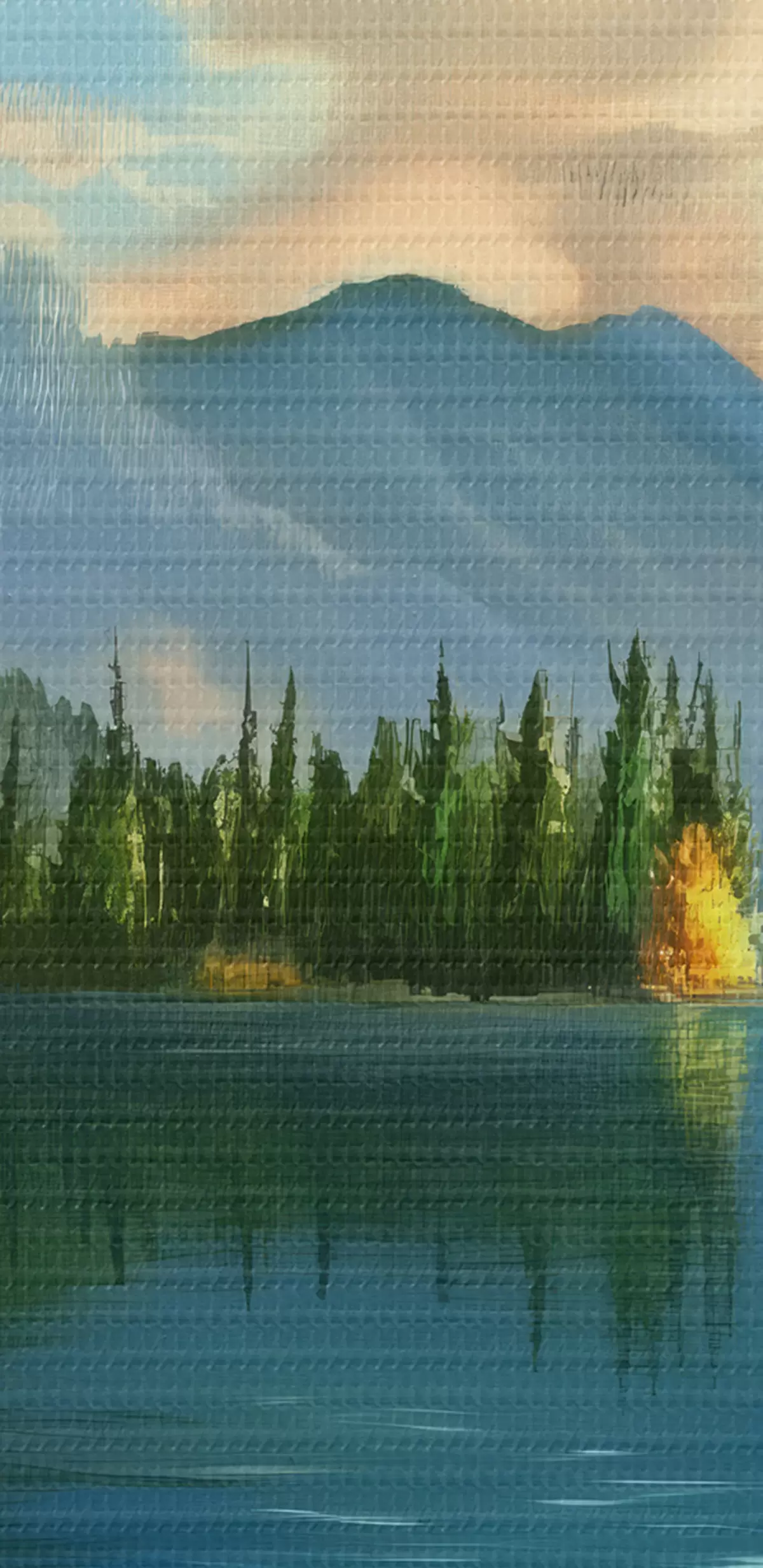 Das feine Fadengeflecht auf dieser Leinwand ähnelt der Oberfläche von professionellen Künstlerleinwänden.