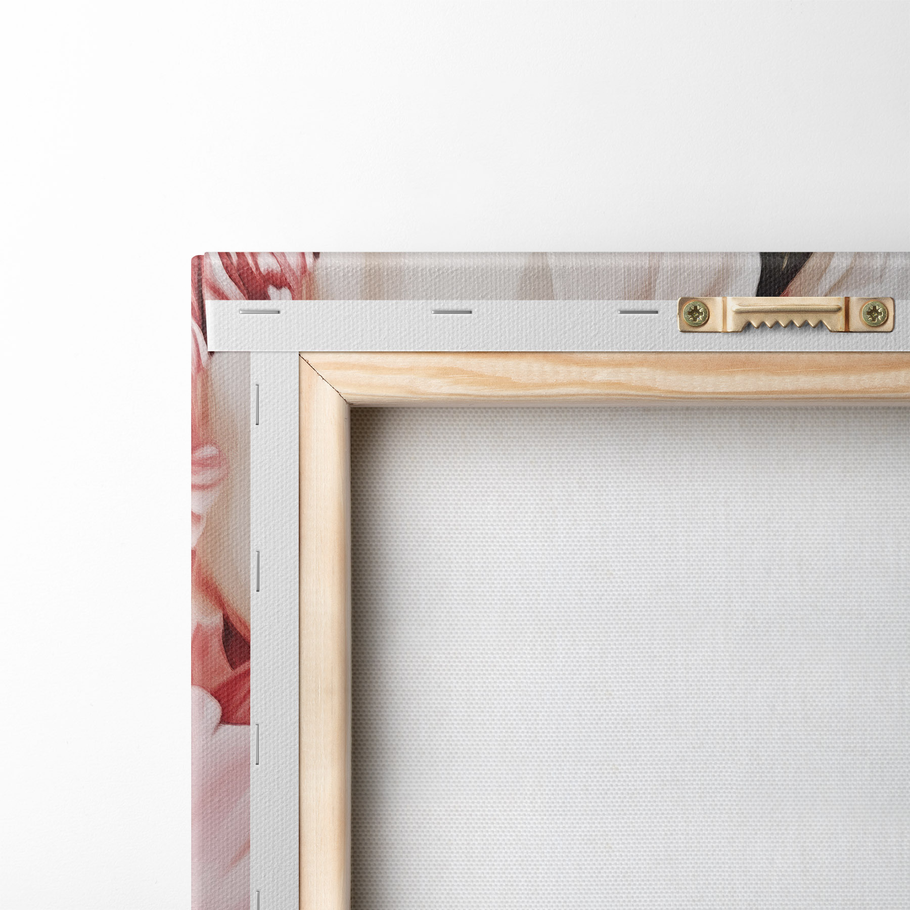 Um die Leinwand auf Keilrahmen zu spannen, ohne das Bild zu beschädigen, verwenden wir ein gespiegeltes Bild.