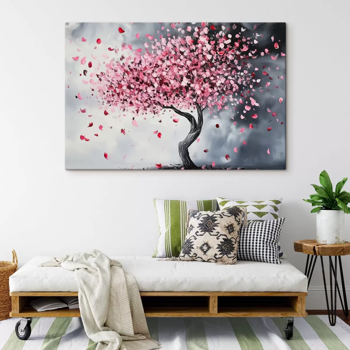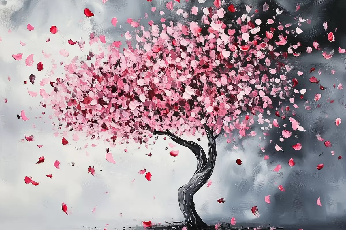 Wandbilder Rosa blühender Baum auf grauem Hintergrund s43299