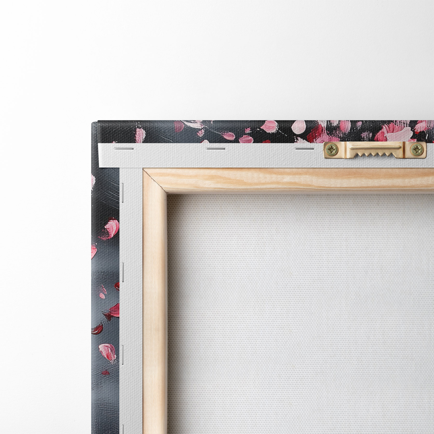 Um die Leinwand auf Keilrahmen zu spannen, ohne das Bild zu beschädigen, verwenden wir ein gespiegeltes Bild.