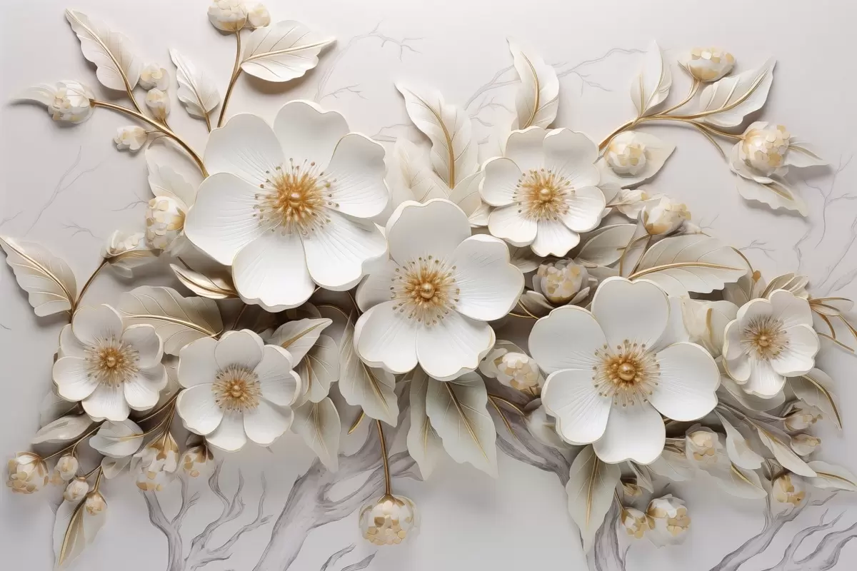 Wandbilder 3d weiße Blumen im klassischen Stil mit einem gelben Akzent Art. s43313