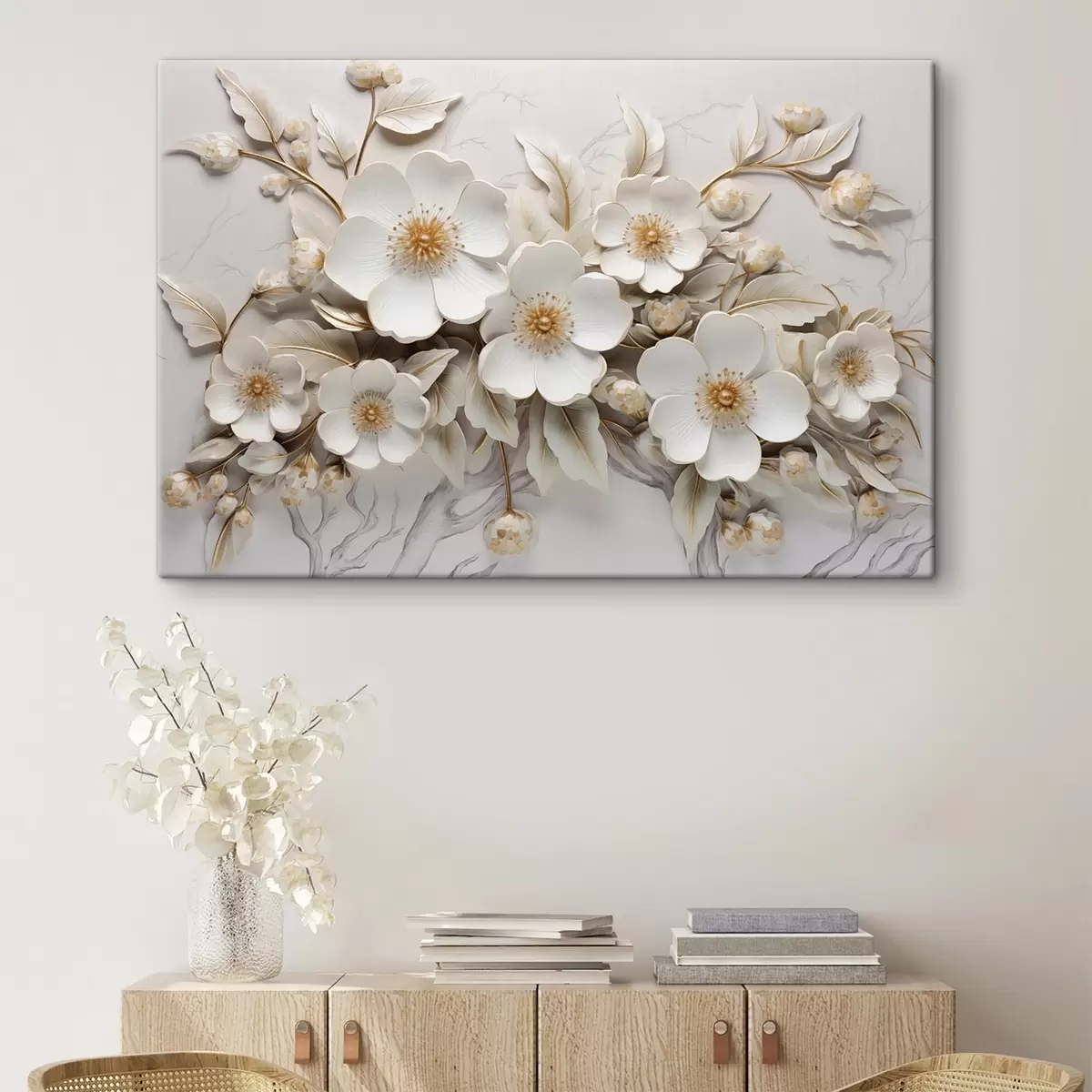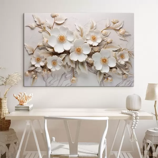 Wandbilder 3d weiße Blumen im klassischen Stil mit einem gelben Akzent s43313