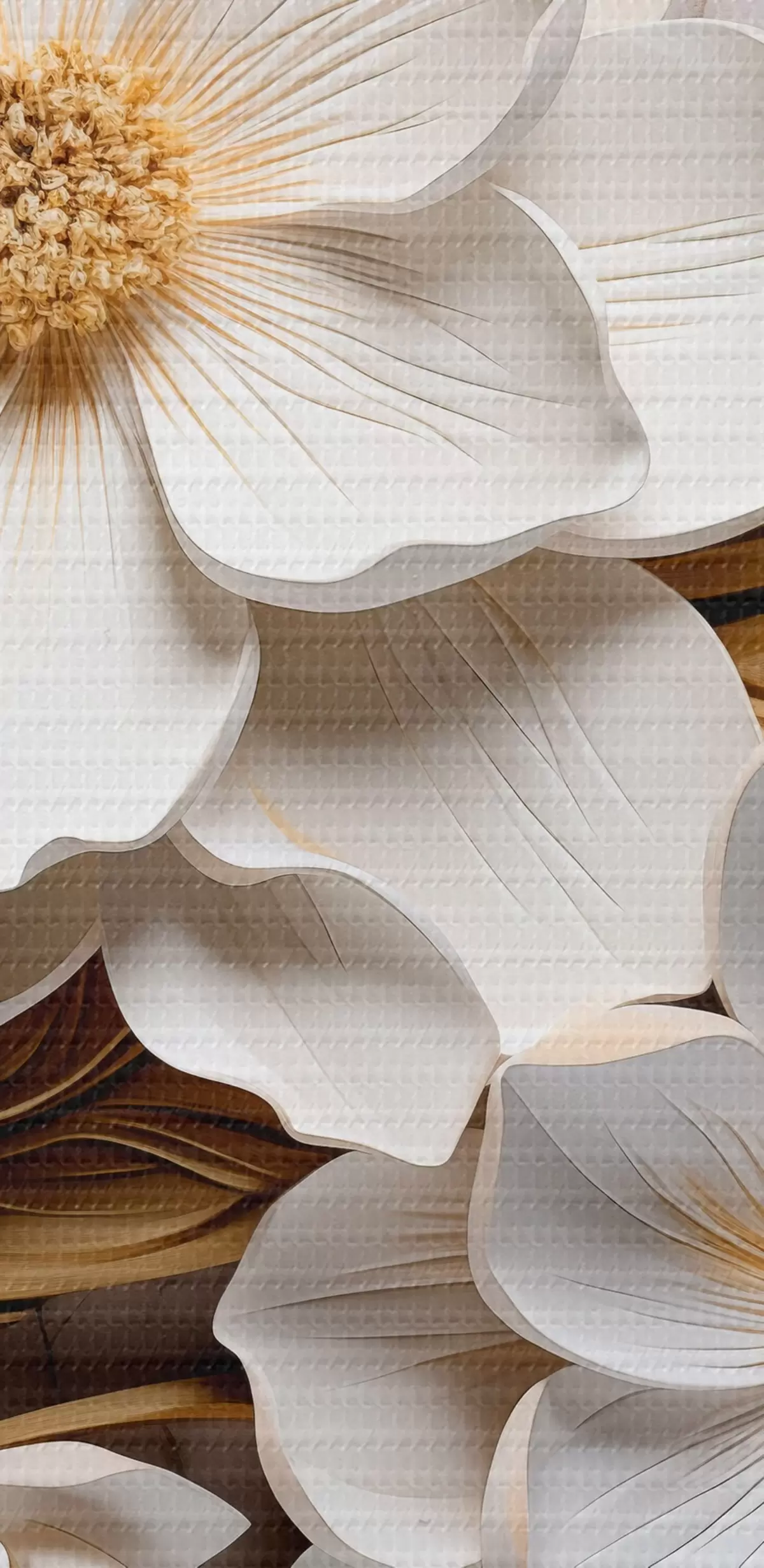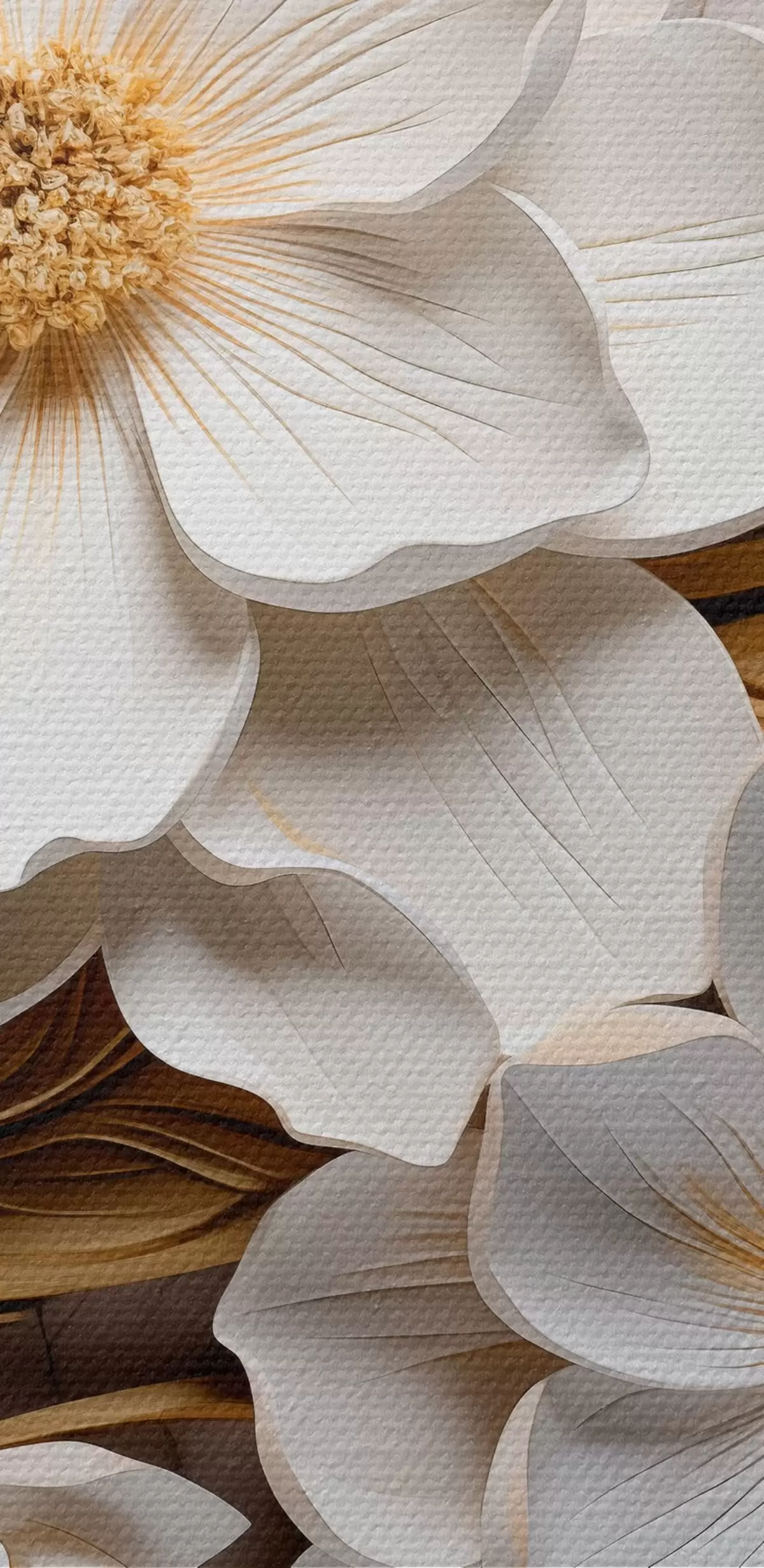 Wandbilder Weiße Blüten im Stil eines Freskenreliefs mit gelben Blättern und Staubgefäßen s43330