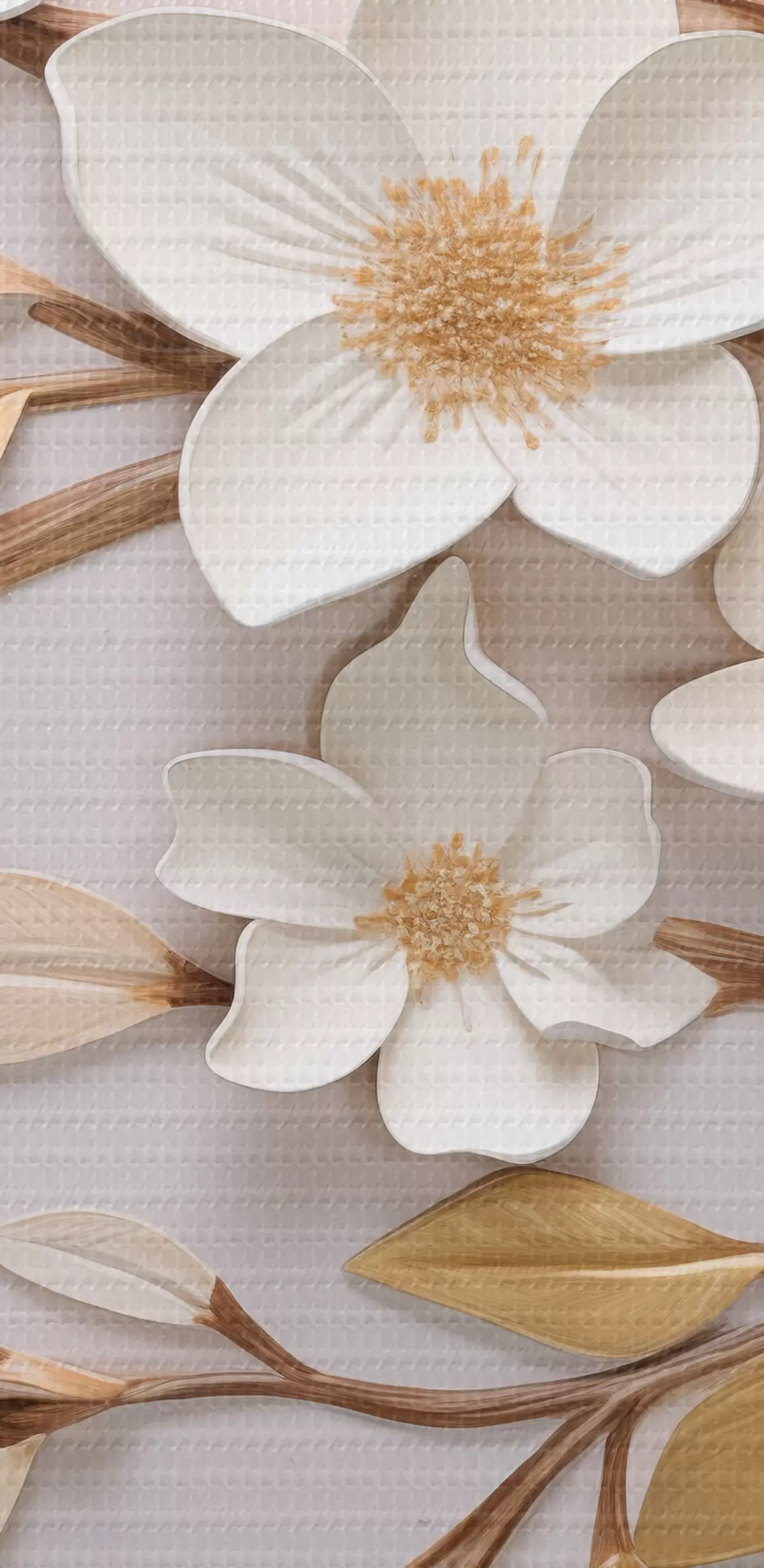 Wandbilder Weiße Blumen im Stil einer Relieffreske mit gelben Akzenten s43331